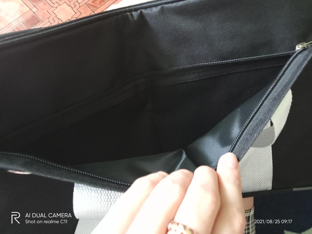 Заказ пришел отличный и вовремя. Запаха никого нет. Отличное качество. Что хорошо это достаточно карманов. Ручки удобные. Вместиться всё. Продавца рекомендую<3😘