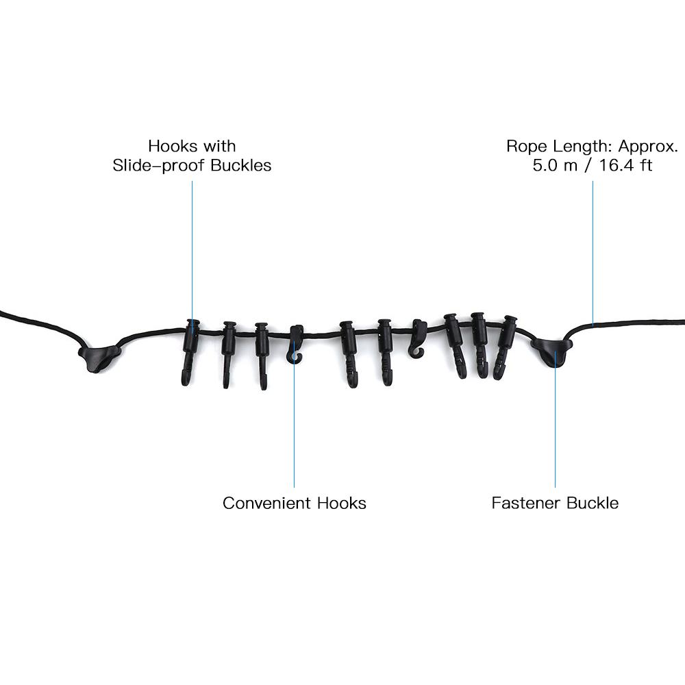 На открытом воздухе 5-метровая подвесная веревка с крючками, универсальная линия одежды для кемпинга, походов и походов