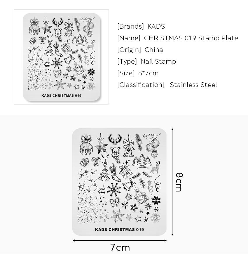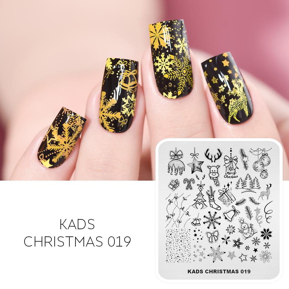 kads Рождественская пластина для штамповки ногтей 019, колокольчики из лося, снежинки, шаблон для дизайна ногтей, инструмент для зимнего изображения для штамповки