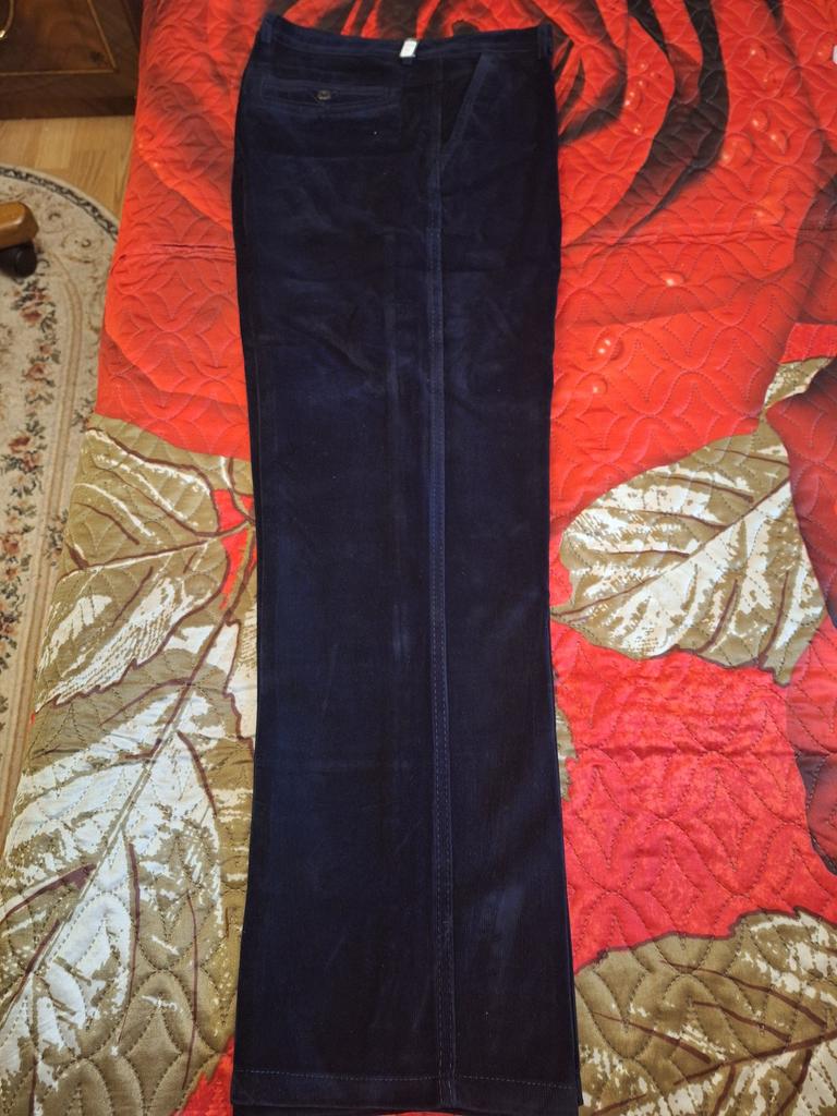 Замечательные брюки. Размер соотв. Вельвет красивый мелкий рубчик. Тыльная сторона ткани как будто атласная ткань (подкладочная) чёрная. Думаю синтетика. Посмотрим в носке. Цвет очень тёмный, почти чёрный. Всё замечания дают только плюсы. Рекомендую к покупке. Упаковка была немного нарушена, но на качество это не отразилось. 👍