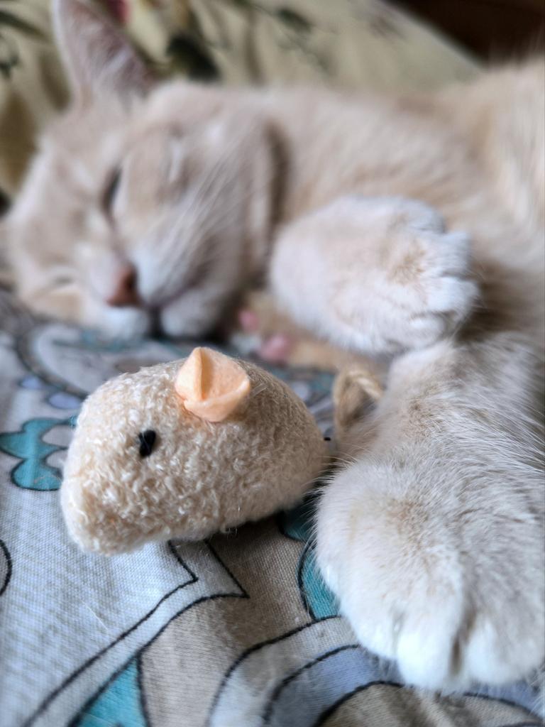 Игрушки для котиков - мышки ❤️ Беру не в первый раз таких. Мои их обожают. Дёргают, таскают пока не изорвут в клочья. В наборе три мышки. Приходят на картонной подложке. Выполнены из ткани, внутри синтепон. У нас сейчас очень жарко и котам не до игр, мышек пока спрячу до более прохладной погоды. Рекомендую 👍 Вашим котикам точно понравятся. Удачных покупок ❤️ Ваша Вика 🙂