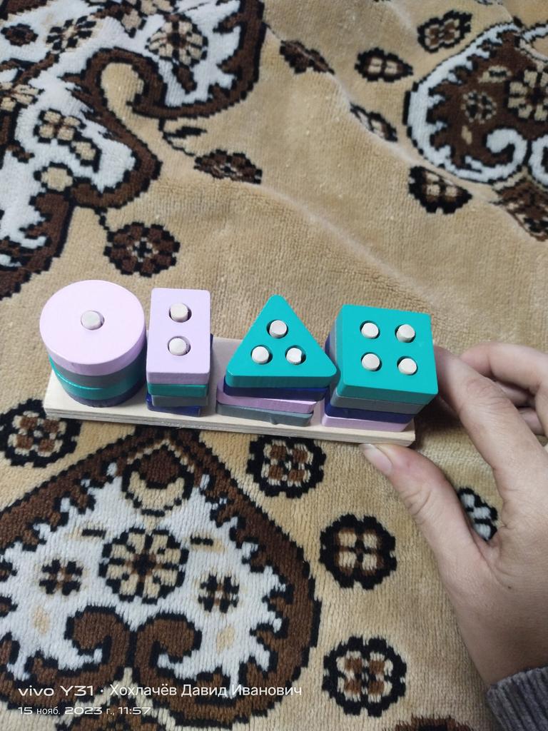 Привет всем✌️😜 Деревянная развивашка для ребенка👶🙈 Приобрела за 254 рубля💸 В пути с 13.04 по 6.05, трек отслеживался полностью, отправили быстро, получила как обычно, на почте🤣🤣🙈 Упаковка обычная, но все целое, запаха нет никакого, единственное - подкачал размер 🤔 все таки, думала, что она будет по-больше😣🥴 да и цена, слегка великовата считаю😩 Думаю, что деткам маленького возраста давать не стоит, маленькие детали точно отправятся в рот👶😑😨 Из недостатков, помимо размера, могу отметить заусенцы😩 но не на самих детальках, а на подставке☝️ В принципе, к покупке рекомендую, но не за такую сумму😉 спасибо продавцу за быструю отправку, и конечно Joom💜 Как попользуемся немного, обязательно дополню😜✌️ 🏘️ДОПОЛНЯЮ: развивашка очень хорошая, ребенку интересно! Единственное - сидеть рядом! Чуть отвлечешься - сразу кладет в рот((( небольшие заусенцы подпилила обычной пилочкой)) Отлично подойдёт деткам от 2х лет! 🤗✌️