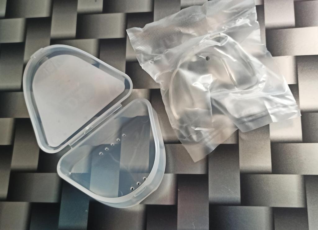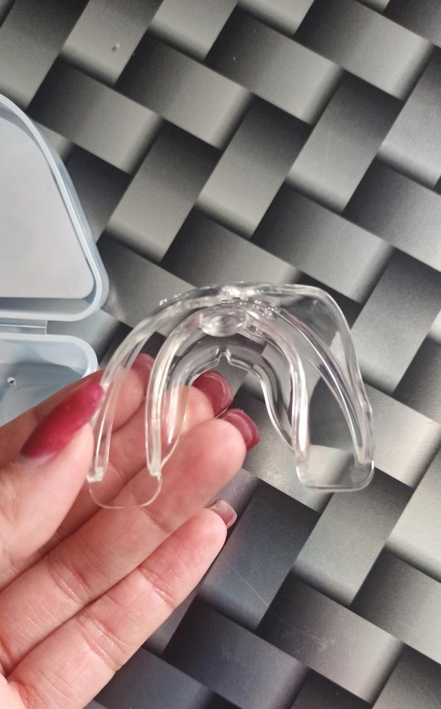 Мой второй ортопедический тренажёр Пришёл в одной посылке с первым. Был упакован в чехол и пакетик Силикон потверже чем у первого. Одевается сразу на верхнюю и нижнюю челюсть. Снизила звезду за то, что тренажёр немного помятый. Ещё не пробовала, позже дополню. Спасибо джуму☺🤗