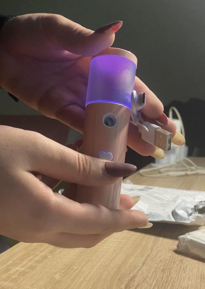 По поводу доставки-пришел товар на 10 дней раньше, чем было заявлено, что очень приятно. Упаковка была цельной, не поврежденной, коробочка без единой вмятинки. Сам товар хороший, без каких-либо посторонних запахов, рабочий, а так же без царапин и заусенцев в пластике. В комплекте давался коротенький USB - провод. Залив воду холодную в резервуар для воды и включив данный аппарат, из отсека где идет микро пар-вода, то по ощущением этот пар очень приятен и охлаждает...., да и не оставляет следов воды от пара... Типа увлажнителя воздуха, только охлаждает само лицо или то куда вы его при мастите... Детская игрушка очередная для старшей дочери, но по качеству за такую цену в полне стоит. Рекомендую