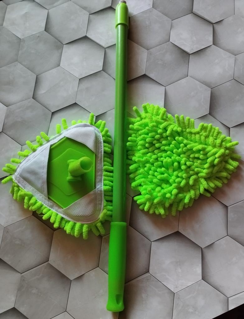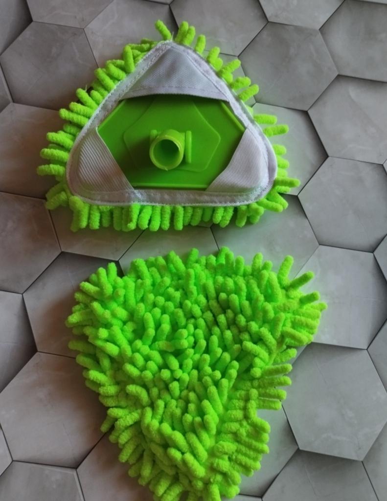☘️Сразу скажу почему поставила три звезды. Товар повреждён и находится в нерабочем состоянии. Хотя идея хорошая и такая швабра всегда пригодится в хозяйстве. У неё должна быть регулируемая телескопическая ручка ( у меня не регулируется от слова " совсем ") В комплект входят две насадки из микрофибры. Съёмная насадка обеспечивает безупречную чистку без царапин, разводов на любых поверхностях. При необходимости насадку можно легко снять и постирать. ☘️Если бы швабра была в рабочем состоянии, то оценка была бы однозначно пять звёзд, т. к я с удовольствием пользовалась бы этим уборочным инструментом. Но... Очень жаль.