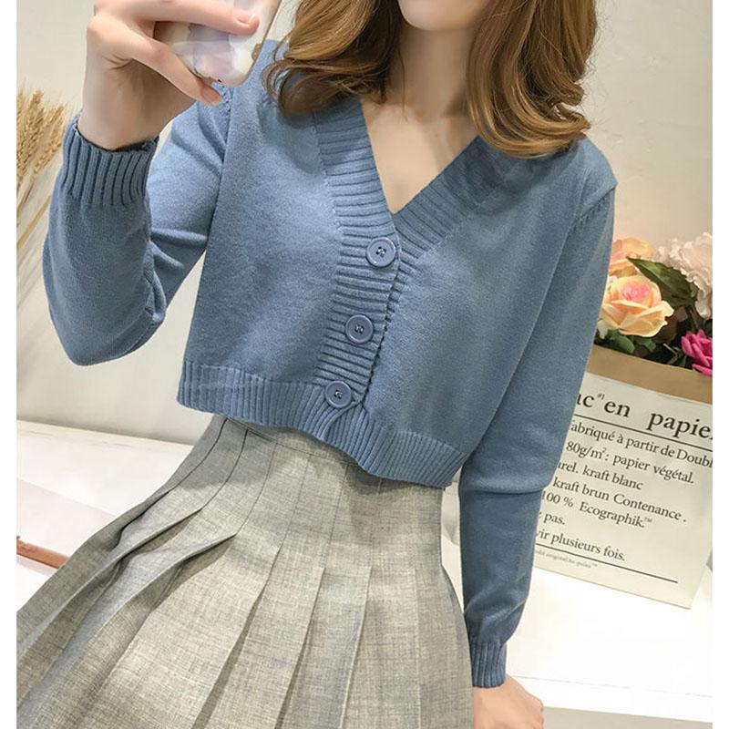 Женские вязаные кардиганы с v-образным вырезом, свитер, женские повседневные универсальные короткие кардиганы, свитер в корейском стиле