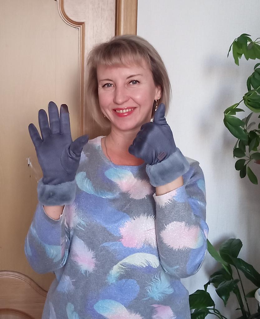 Красивые и стильные перчатки из искусственной замши.🤗 Материал внешне и на ощупь похож на натуральную замшу,изготовлен из полиэстера на основе натурального хлопка. Ткань имеет 👍 специальную защитную пропитку,которая делает материал прочным и устойчивым к любым воздействиям. На ощупь поверхность мягкая, гладкая. Внутри перчаток искусственный утеплитель. На указательных пальцах есть небольшие вставки для сенсорного экрана. Я попробовала, всё отлично 👍 работает. Цвет перчаток выглядит как на фото продавца 🙂👍, очень приятный. По размеру мне перчатки подошли идеально 👍 На руку покрупнее,я думаю,они не подойдут,так как они не тянуться.У меня запястье 16см, больше 23см будут впритык 🥲. Качество хорошее 👍💯:прошиты ровно, аккуратно,торчащих ниток нет, дефектов не имеют. Перчатки не очень толстые, вряд ли подойдут на сильный мороз.Но это всё индивидуально.🤔 Перчатки к покупке рекомендую 🤗👍💯: смотрятся они элегантно, приятные и снаружи,и внутри, качество отличное 👍 и цена доступная.