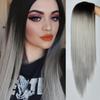 XINRAN Длинные прямые синие зеленые синтетические парики Ombre для женщин, 24-дюймовые черные фиолетовые парики, термостойкие парики для косплея