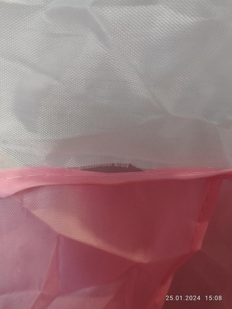 Очень понравилась ребёнку палатка, есть не большой минус, каёмка не ровна прошита, до конца края не прошиты придётся дорабатывать, на сеточке в окошке небольшая дырочка. Не прошло и недели как палатка порвалась и ещё минус, заметила позже не ровно сшито.
