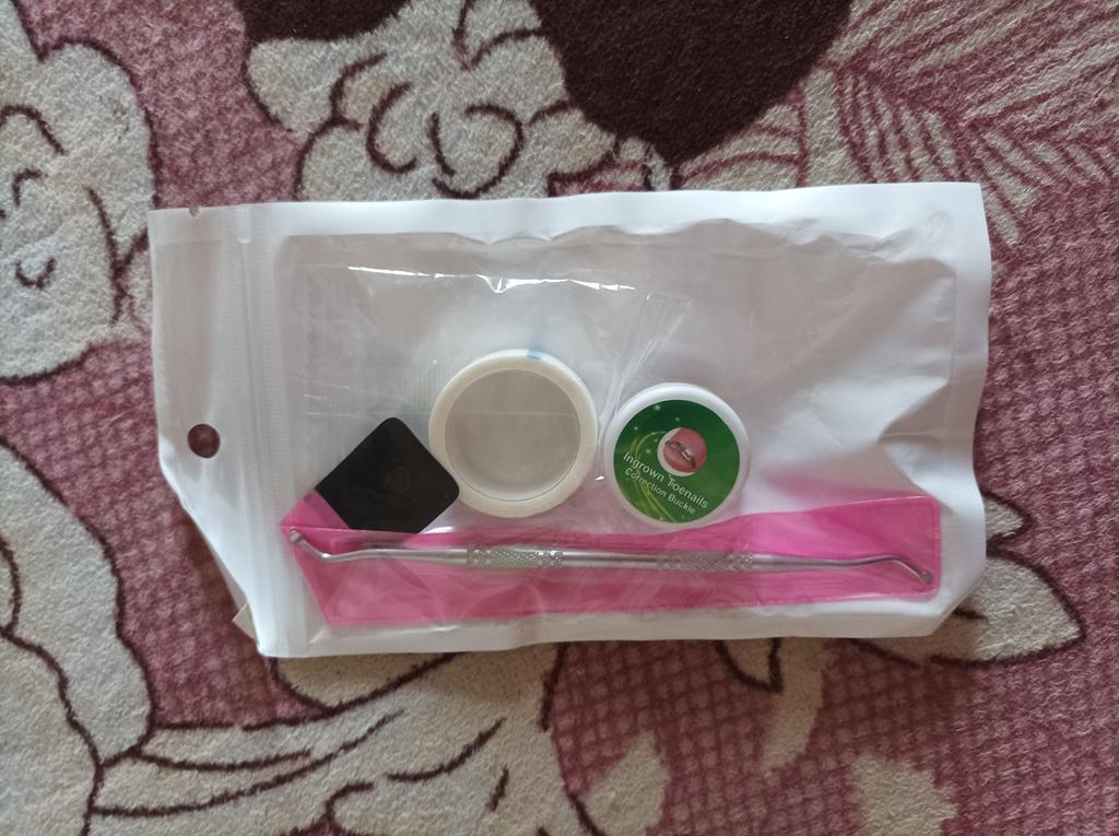 Доставка быстрая.спасибо продавцу.рекомендую.пластырь бумажный.скобка одна,могли бы и две кинуть.насколько эффектно будет отпишусь позже.приспособа для прямых ногтей,печаль.