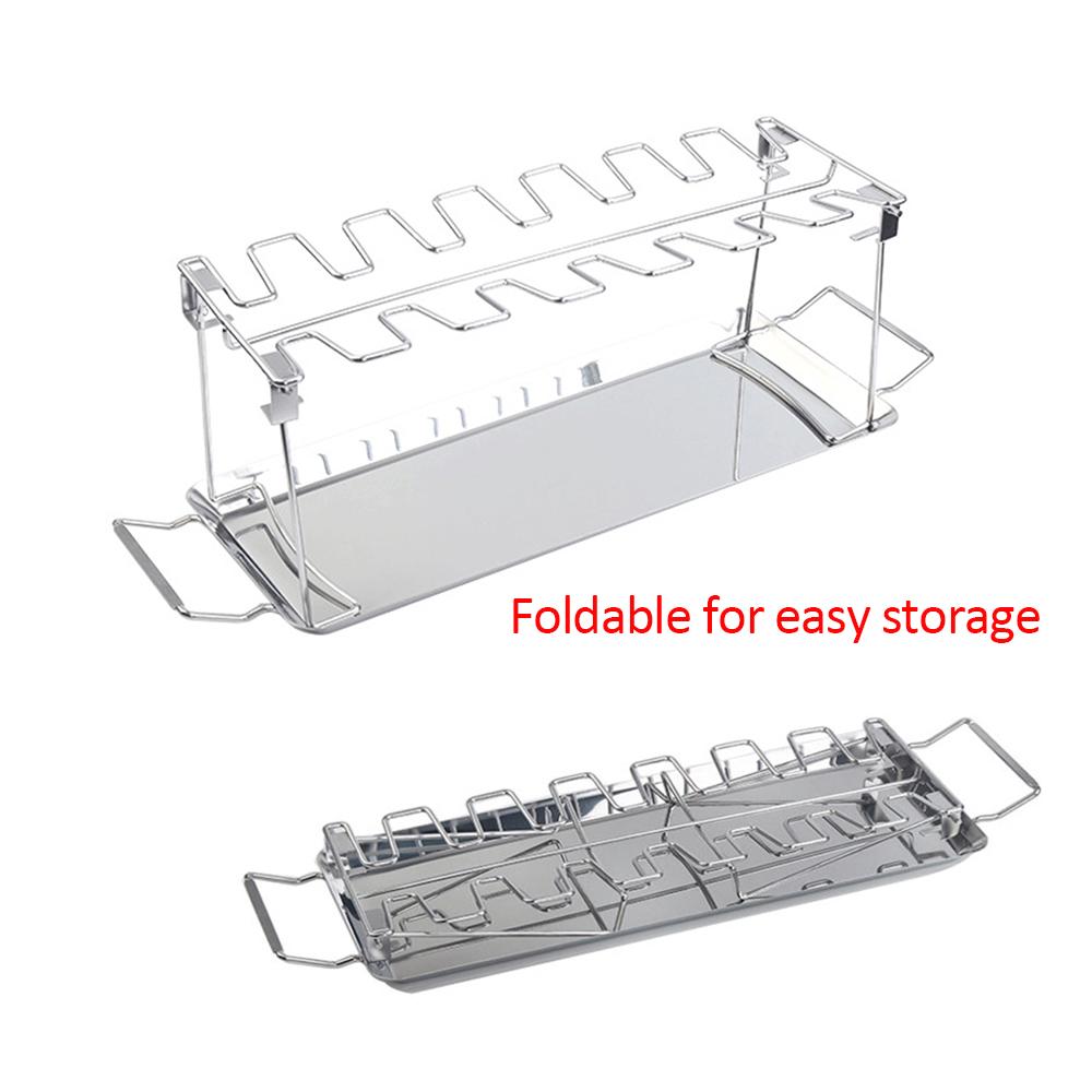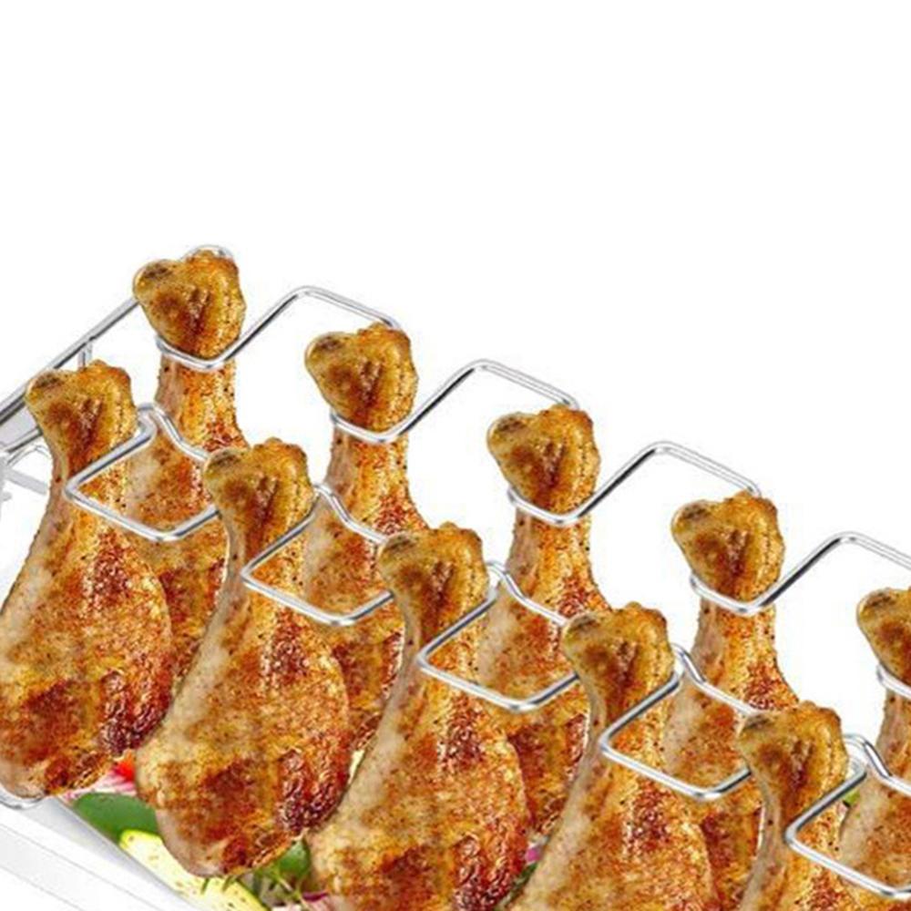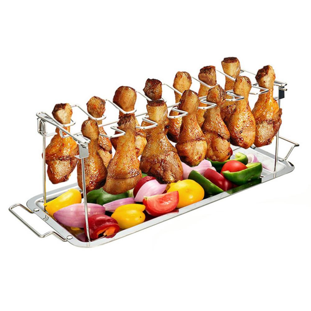 Подставка для ног куриного крылышка из нержавеющей стали для духовки-гриля, коптильни, 12 слотов, подставка для жаровни с поддоном для сбора капель