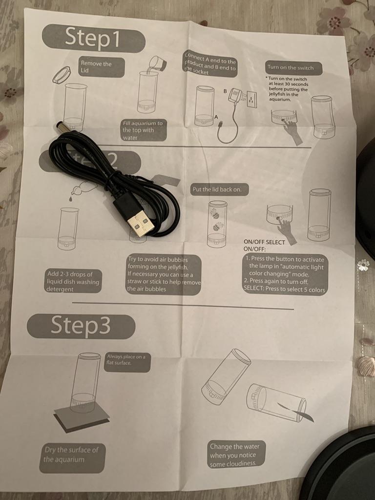 Аквариум имеет 18 светодиодов (по шесть красных, синих и зеленых), которые автоматически меняют цвет, заставляя обе медузы «реагировать», светясь желтым, фиолетовым, аквамариновым, синим и красным, когда они плавают в мягких токах, генерируемых бесшумным, встроенным двигателем устройства..