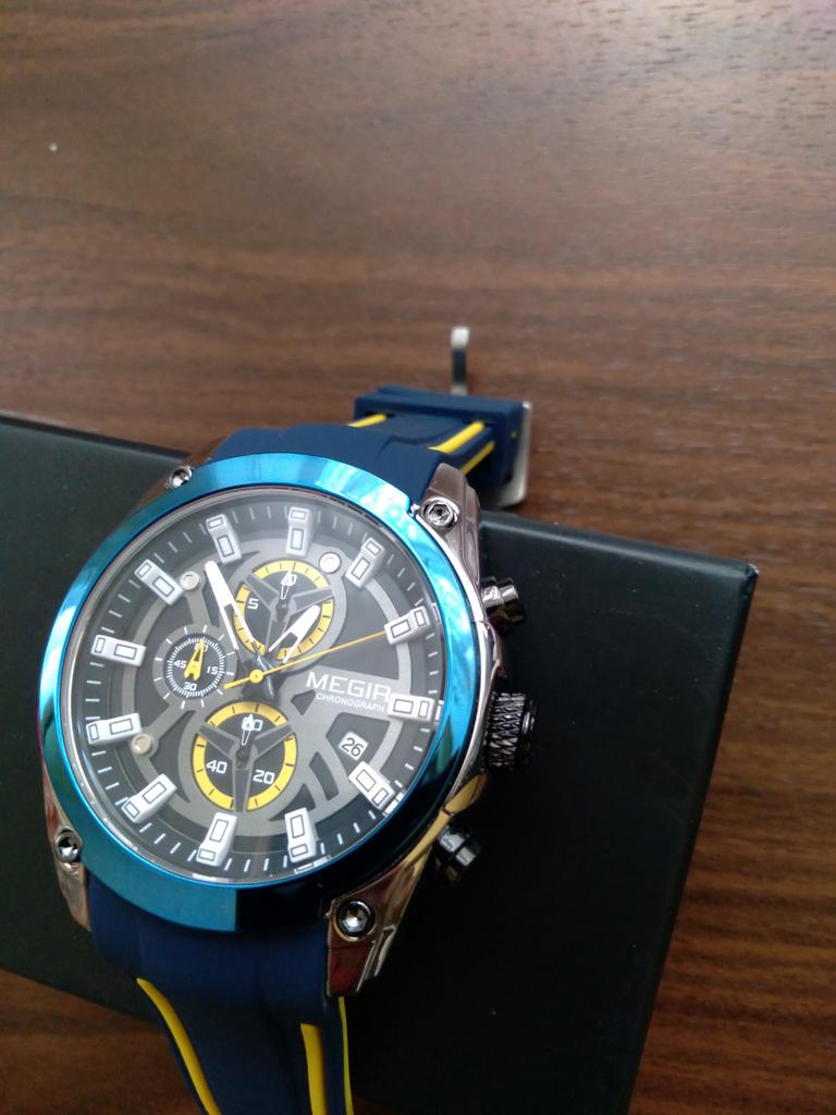 Megir мужские кварцевые наручные часы Megir – активно растущий часовой бренд, взявшийся за собственное производство часов, выкупив старинный, но разорившийся швейцарский бренд. До этого Megir производили качественные корпуса часов для именитых брендов. Все модели часов выполнены в классическом стиле. Часы выпускаются как механические, так и кварцевые с применением японских механизмов. На сегодняшний день Megir зарабатывает себе имя, и это дает возможность потребителю приобрести поистине высокое качество по доступной цене. С 1997 году бренд Megir принадлежащий Shenzhen-Meigeer Watch Company of Guangdong и является крупным профессиональным производителем и экспортером, который концентрируется на исследованиях, разработке, производстве и продаже высококачественных часов, как механических, так и кварцевых. Кварцевые механизмы обычно от Seiko или Miyota что говорит об их стабильной работе. Мужские часы с хронометром Megir работают на кварцевом механизме, по этому, не придется заводить их каждый день. Все стрелочки на циферблате работают, справа отображается дата. Наручные часы Megir изготовлены из натуральной стали, стекло минеральное (более стойкое к царапинам). В целом часы выглядят очень дорого и качественно, дизайнеры сумели сочетать классический стиль со спортивными нотками. К качеству изготовления часов претензий нет. Все сделано качественно и аккуратно. На циферблате ничего кривого нет, куски краски со стрелок не отваливаются, тикают еле слышно. Стекло немного выступает над корпусом, что, мне кажется, не самым лучшим вариантом. Как правило, в таких случаях оно царапается больше и быстрее, нежели в тех моделях, где оно утоплено или расположено на одном уровне. На задней крышке присутствовала наклейка с голографией, указывающая на то, что это оригинальный товар. Сам корпус довольно массивный, мужской, мне очень понравился дизайн. Ремешок выполнен из материала напоминающего "резину". Тоже довольно толстый с качественной металлической застёжкой. Подводя итог всему, что тут было написано, могу сказать, что, в целом, Megir 2020 довольно неплохой хронограф с привлекательным внешним видом, хорошим качеством изготовления и невысокой стоимостью.