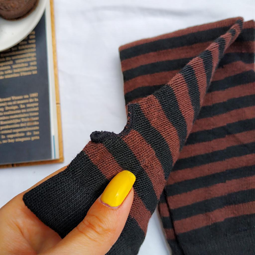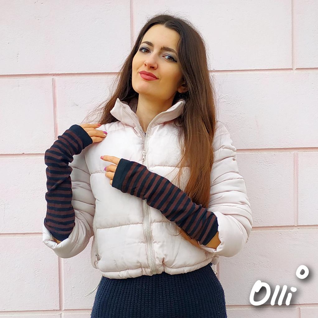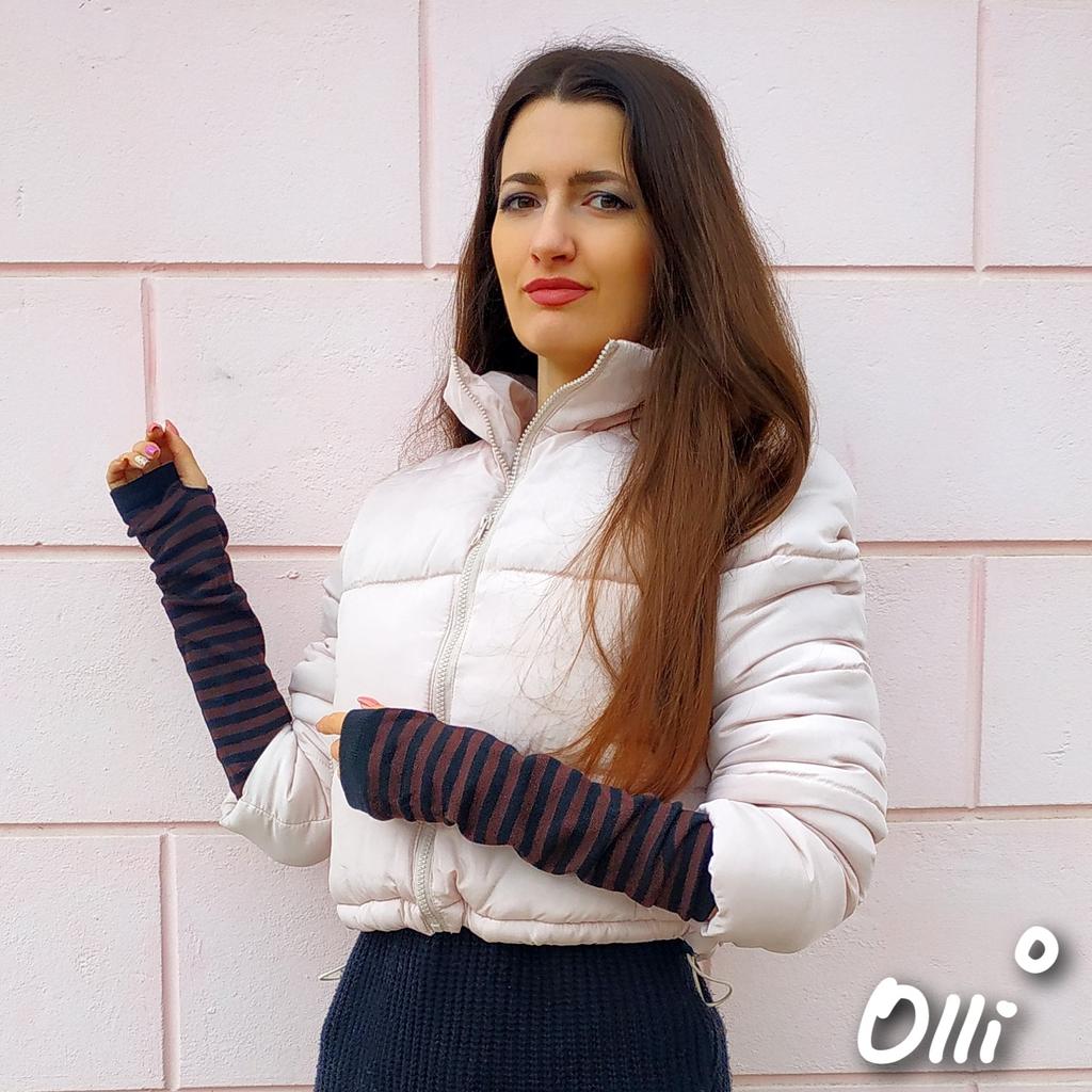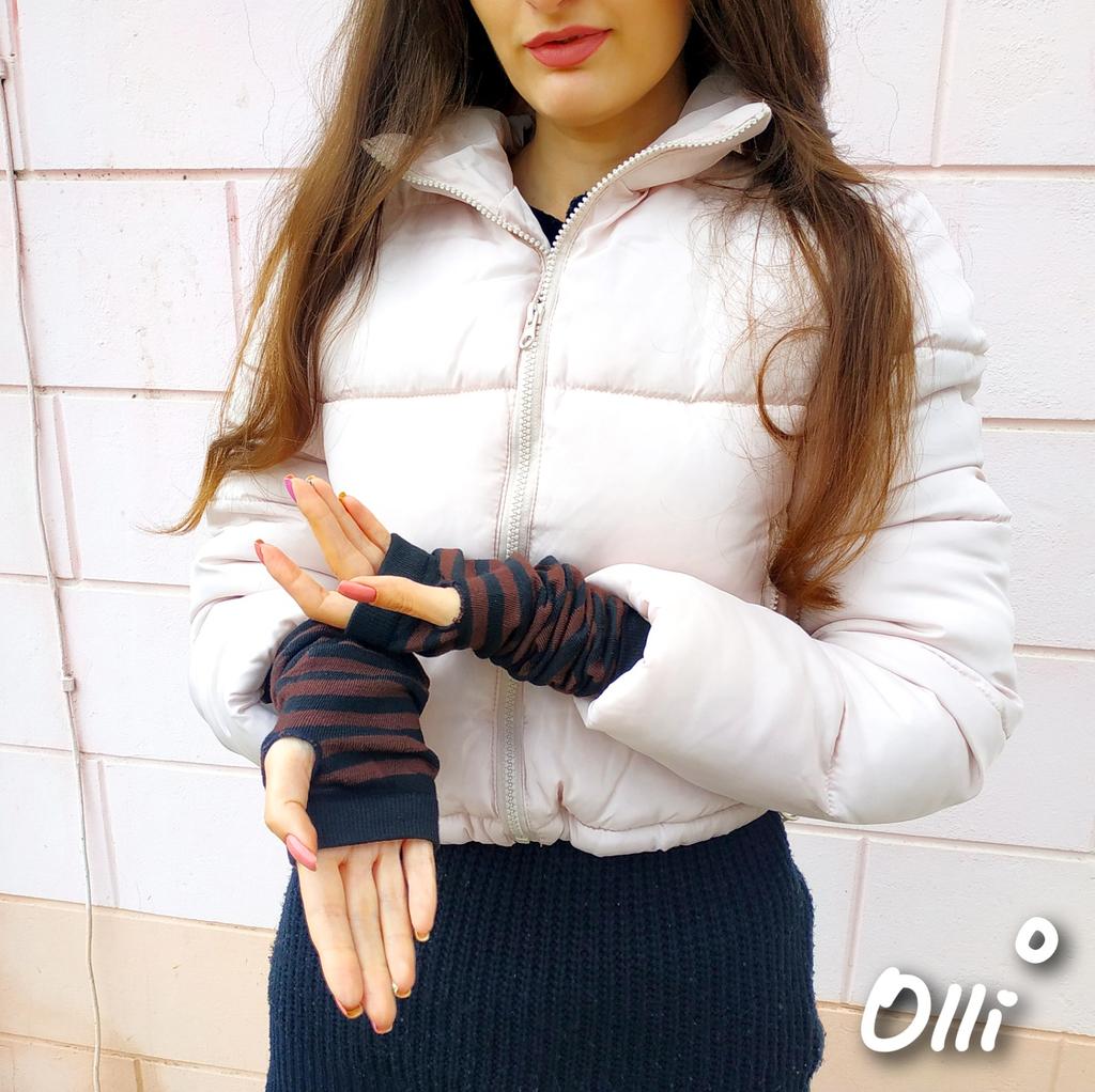 ВЫСОКИЕ ПЕРЧАТКИ-МИТЕНЬКИ В ПОЛОСКУ 👐 Перчатки у меня есть разные. И есть даже такие с открытыми пальцами. Но они короткие и между мандатом куртки и самой перчаткой расстояние, холодно. Решила взять такие высокие, чтобы уж точно не задувало Посылка пришла в Украину за 20 дней. Упаковано в обычный почтовый пакет и индивидуальный. Все как и заказывала. Пришли перчатки в черную и коричневую полоску. Я взяла темный вариант, чтобы особо в глаза не бросались. Но у продавца есть и яркие цвета. Вязка плотная, но они не толстые и не теплые. У продавца заявлено, что это полиэстер. Тянутся хорошо. Перчатки высокие - 37 см. Можно вытянуть на всю длину или же носить в виде гармошки. На мои худые руки широкие, подойдёт на полнее плюс они тянутся Сверху и снизу есть резинка. Держит хорошо. Отверстие под палец просто оверложено. Внутри перчатки аккуратные. Есть пару торчащих ниток, но это не проблема. У меня маленькая рука и перчатки сидят отлично. Даже немного прикрывают пальцы. За счёт того, что ткань хорошо тянется, то подойдёт и на крупные руки Перчатки прям соответствуют всем моим требованиям. Смотрятся классно. Я все свои фото раскладок делаю на улице зимой и как раз хоть суток согрею руки. Конечно не жарко в них, но хоть ладошка будет прикрыта и телефон удобно держать! БУДЬТЕ ВСЕГДА КРАСИВЫ 👸