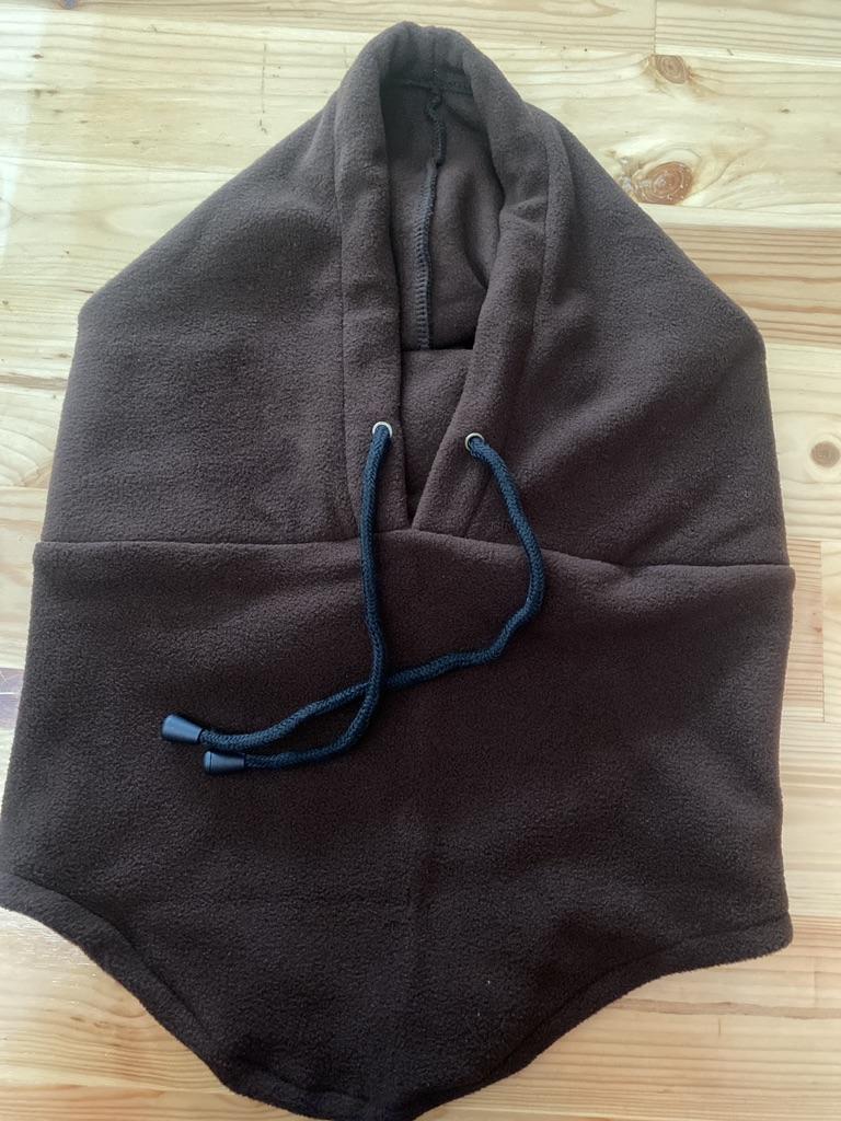 Для чего такой огромный капюшон? На бычью голову. В шее хорошо, верх груди прикрывает нормально, удобный свис на верх спины под куртку или ветровку. Но, блин, капюшон...