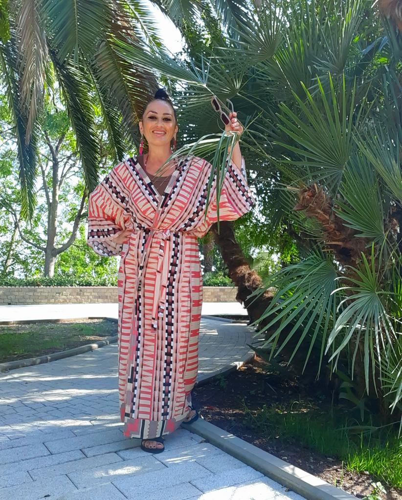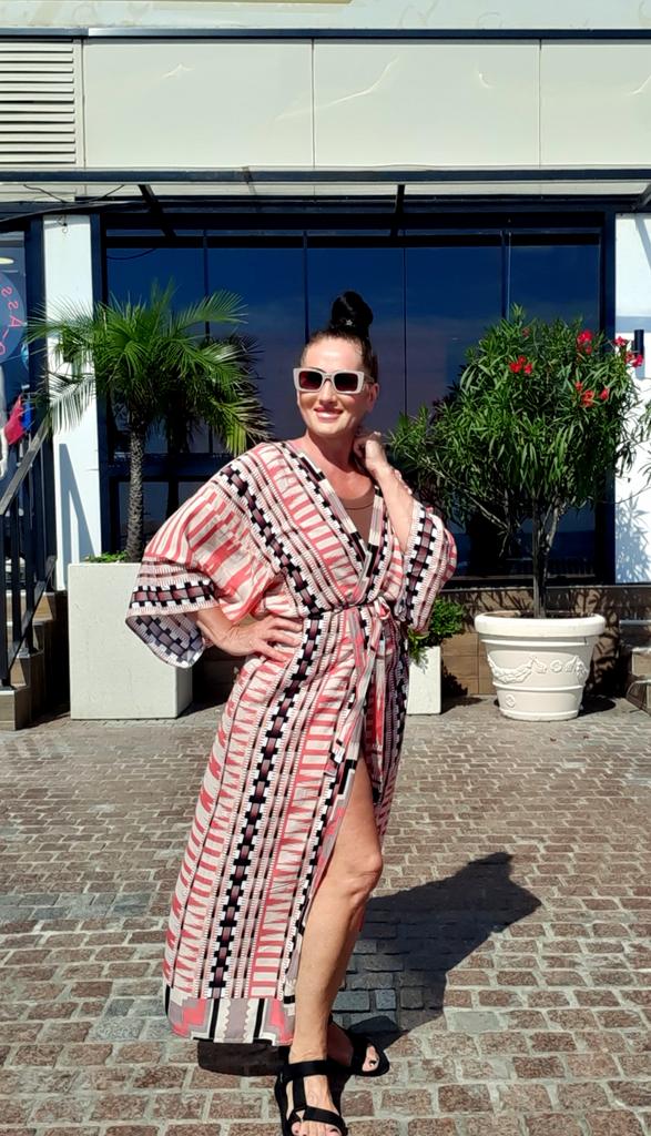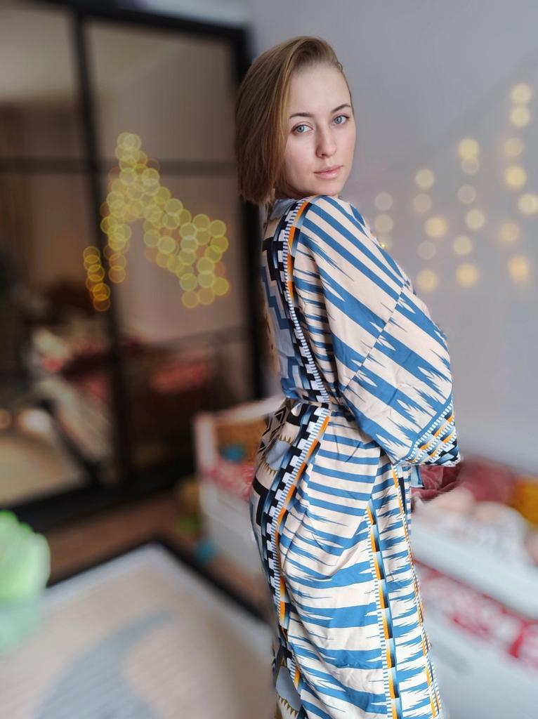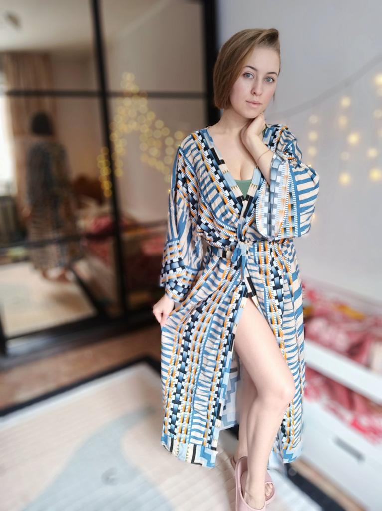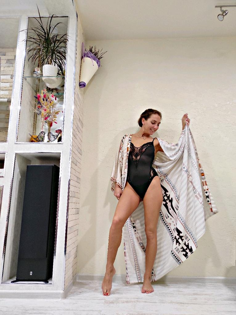 Кимоно мне очень понравилось, а размер единый, я знала, поэтому претензий нет, может еще и подсядет, ведь я не высокого роста, да и миниатюрная, всё равно на мне хорошо смотрится. Носить можно везде и с чем угодно. Либо как домашний халат, на пляж, в жарких странах и по улице, к примеру в Эмиратах, там так и надо ходить) Жду лета и путешествия куда-нибудь, однозначно на отдых я готовлюсь по полной, приобрела много разнообразных купальников, накидок для пляжа, рубашки, брючки хлопковые, ух! Красота, мне всё идёт и подходит! Я довольна! Спасибо Джум! Материал такой интересный, как будто холодит, струится, и хорошо гладится, да и мнётся наверное, я не садилась пока фоткалась) Карманов нет, это единственный минус, зато есть поясок. Можно пришить липучку или кнопочку, чтобы на груди не слишком раскрывалось, если носить как кимоно.