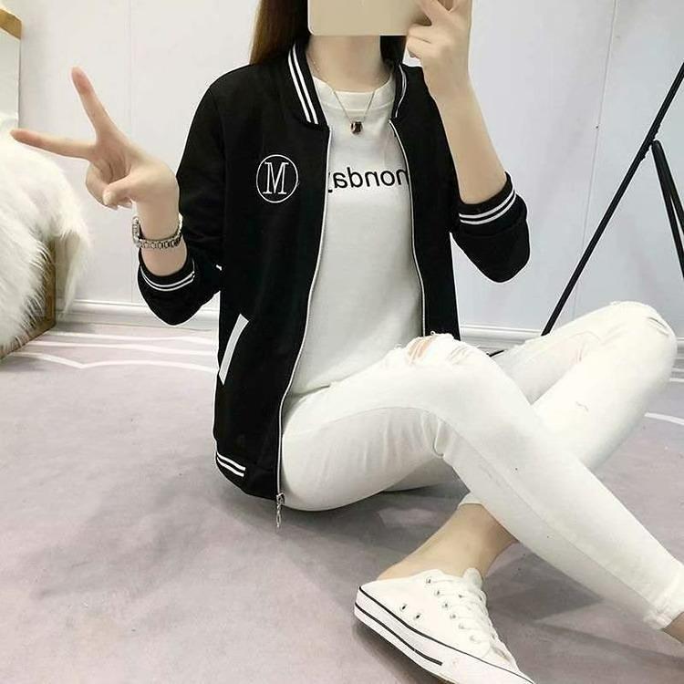 Пальто для девочек, весна и осень, новый корейский студенческий универсальный свободный и тонкий свитер большого размера, бейсбольная куртка, топ с длинными рукавами