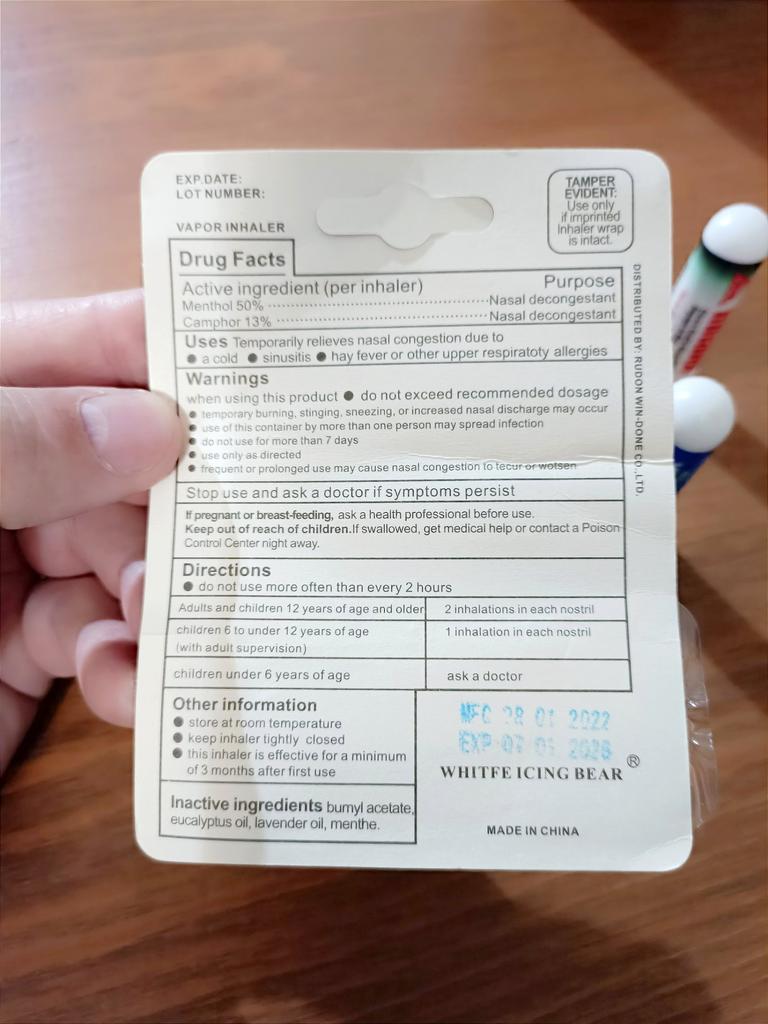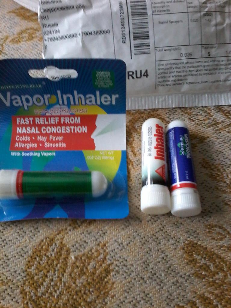 Три назальных ингалятора купила за 211 рублей, доставка до Свердловской области ровно месяц .раньше пользовалась аналогичными производства Вьетнам, очень хорошо помогали при простуде и заложенного носа. Эти произведены в Китае, на 2х срок годности до 2023 года, на третьем не нашла. Чем отличаются друг от друга неясно, т к никакой информации на русском языке нет, как и в описании продавца. надеюсь, что так же, как Вьетнамские будут помогать дышать при насморке . Зачем в описании лечебного средства указывать размер футляра, куда оно упаковано? Лучше было бы продавцу указать состав и который от чего помогает. Попользуюсь -напишу про свои впечатления.