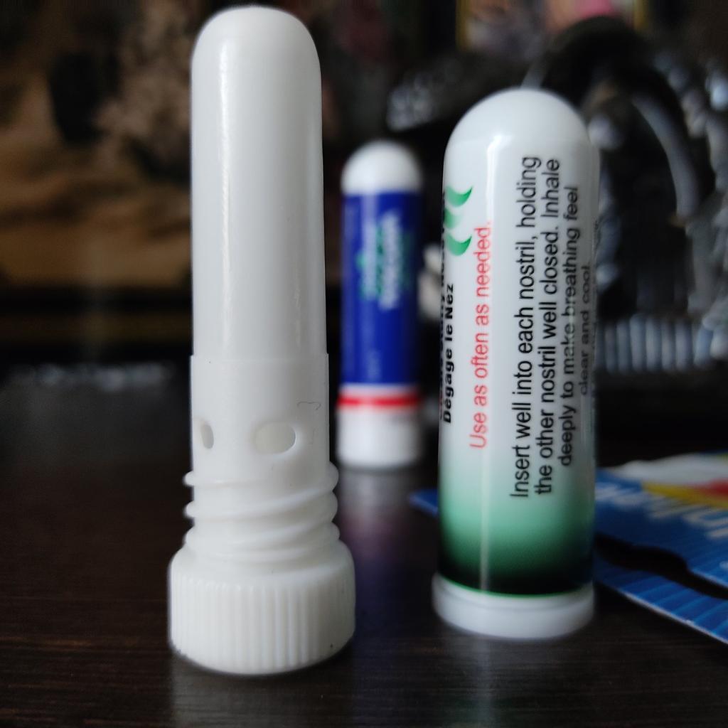 Набор из трёх ингаляторов по весьма демократичной цене. До этого я покупала их отдельно, по 150-200 рублей за штуку. Ингаляторы небольшие, но очень долговечные, они практически не заканчиваются. Каждый состоит из пластикового корпуса с завинчивающимся колпачком. Внутри стик, который состоит из ментола и камфары. Пахнет резко, но приятно. Срок годности до апреля 25 года. Рекомендуется вставлять в каждую ноздрю и вдыхать, частота использования не чаще, чем раз в 2 часа, и не дольше 7 дней. Я не знаю, почему такие рекомендации, ингалятор абсолютно безвреден, и мне нравится его использовать и чаще. Жаль, что заложенность носа проходит практически сразу 😁 Да и вообще, он отлично прочищает носовые ходы. Муж его нюхает по вечерам, для профилактики.