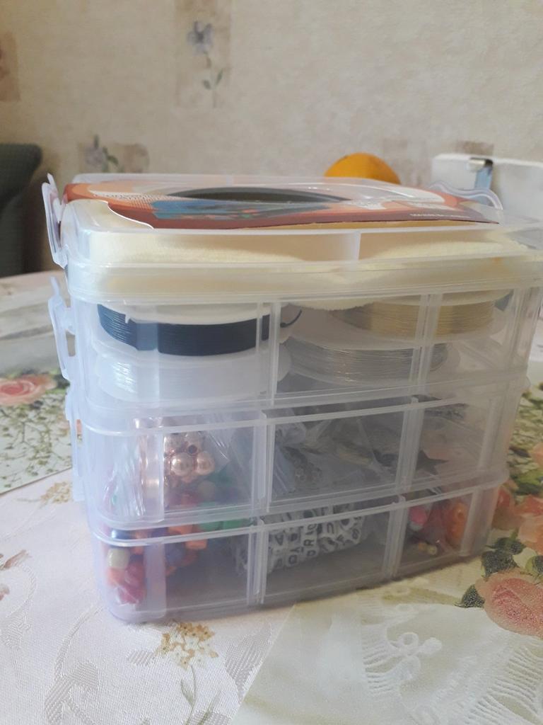 🌷💖 Бокс для изготовления бижутерии. 💖🌷 Заказ 06.03. - 08.04. Покупала за 1481 руб. 🔹️Мои племяшки подросли и уже во всю делают сами серёжки-браслетики (тем более, что я им постоянно подкидываю фурнитуру и бусинки). Узнала, что хороших инструментов у них нет и ...родилась идея подарка к Д/Р (это часть подарка). 🔹️Бокс трёхярусный с ручкой для переноски. Начинка полностью соответствует описанию. Инструменты хорошии. Всё, что необходимо, в этом боксе есть для начинающих. Даже если покупать всё по отдельности, то выйдет гораздо гораздо дороже!!! Сняла вам подробное видео, кого заинтересует. 🔹️Ждала его очень, переживала как дойдёт... и печалька ...бокс пришел разбитый, хоть и был упакован в коробку и пупырку. Расстроилась конечно, но уже заказали такой же бокс без начинки у нас, что бы не ждать. 🙈 В СП пока писать не стала ...собираюсь с духом, сначала выкладываю обзор. 🔹️В принципе очень советую на подарки девчёнкам начальной школы... и не только. Самые нужные инструменты в нём есть, а другую фурнитуру и бусины можно добавить по мере использования. Ячейки регулируются. 🔹️Всё компактно и по местам, да и в отдельном боксе. Попользовался, убрал всё в коробочку и всё на месте и под рукой, искать не надо. 🔹️Звезду снижать не стала, товар хороший👍... возможно виновата доставка. 👍🌷🪻🌷...Теперь будет чем заняться девчёнкам летом на какикулах. 🔹️🔸️Спасибо! 🌷🌷🌷🌷🌷🤗 Пы. Сы. ...Дождитесь загрузку видео. Там рассказала подробно. Новый бокс уже в пути, через неделю получу.
