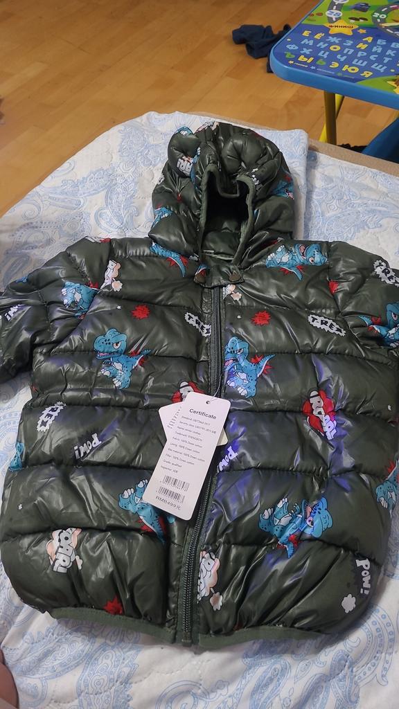 Очень хорошая курточка! Полностью соответствует фото. Продавец порадовал во всём. Быстрая доставка меньше месяца. Товар отслеживался по всему пути. Куртка мягкая, наполнение синтепоном плотное. Наверху у молнии есть защитный "язычок" из ткани, чтобы ребёнок не мог поцарапать подбородок собачкой. Молния пластик. Всё прошито аккуратно нет висящих ниток. Брала для ребёнка с ростом 110 см "на вырост", но можно уже и сейчас одеть. Фасон куртки укорочённый, поэтому по длине всё хорошо, прикрывает пятую точку, а рукава пришлось немного подвернуть Куртка лёгкая но достаточно тёплая . Я думаю, подойдёт на погоду от -2 до +5-7. Продавцу большое спасибо. К покупке рекомендую.