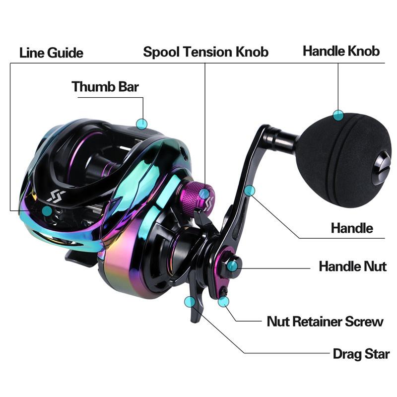 SOUGAYILANG Рыболовная катушка для наживки с высокоскоростным передаточным числом 8,0:1, рыболовная катушка с шарикоподшипниками 9 + 1, литейная катушка с мощной ручкой