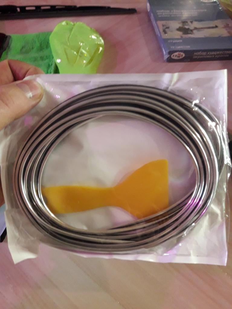 Здравствуйте,получил очередной заказ..молдинг для заделки щелей в авто,сам посебе молдинг мягкий,оч.хорошо гнется,тонкий,что несказанно одобряется т.к.не будет аляписто смотрется,данный девайс очень индивидуальная вещь необходимая в основном для людей чья голова рукам покоя не дает,об установке рассказов в инете море,не буду рассказывать и об установке,скажу одно,взял,заказал,пришло,воткнул в щель,понравилось,да и ладно,по крайней мере вид не испортила..прежде чем заказывать такой молдинг,хорошо все промерте,+2см.,добавьте чтоб наверняка и в путь,диаметр самой декорации 3мм.,глубина погружения 5мм.остальное на фото,цвет и длинна на ваш выбор.