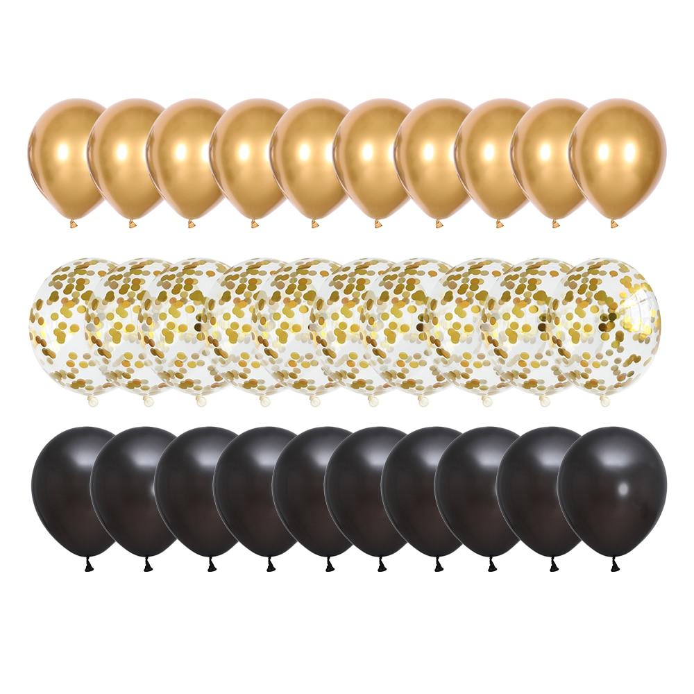 30 шт. золотые, черные конфетти латексные шары для дня рождения, украшения для взрослых, воздушные шары для свадьбы, детского душа, юбилея, воздушные шары