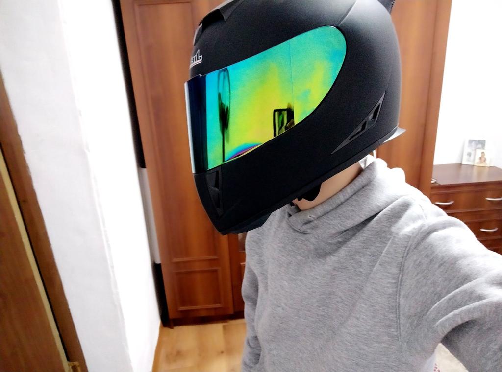 Вобще супер шлем, стекло фиксируется 3 положения, размер подошол , дышать легко. Спасибо за товар производителю, джуму !!!