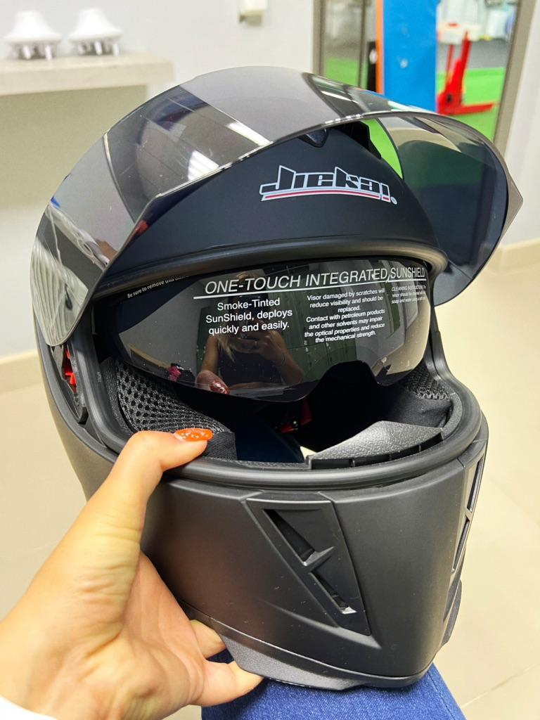 МОТОШЛЕМ🏍⠀ ⠀ 🚚 заказ отправлен 18.06, получила на почте 20.07⠀ ⠀ 🏍 очень хорошо упакован, но есть царапина, не фото видно, в принципе не критично⠀ ⠀ 🏍 присутствовал запах, в первый день выветрился⠀ ⠀ 🏍 за свои деньги сделан качественно, ничего не сломано и не торчит⠀ ⠀ 🏍 удивлением было наличие солнцезащитных очков⠀ ⠀ 🏍 забрало мощно затонировано, но в принципе вечером ездить нормально⠀ ⠀ 🏍 вентиляция работает хорошо, открывается снизу и сверху⠀ ⠀ 🏍 заказала размер М⠀(54-55 см), у меня свой такой же, но этот оказался слегка большеват, с балаклавой ещё более менее⠀ ⠀ ⠀ Ну он такой стильный😍 невозможно не влюбиться! Ничего лишнего, чёрная ⠀ классика💣🖤 цена - подарок 🎁 ⠀ ⠀ ⠀ Спасибо, Джум!⠀ ⠀ Встретимся в следующем обзоре!⠀ ⠀ Ваша Эвелинка-Мандаринка🍊