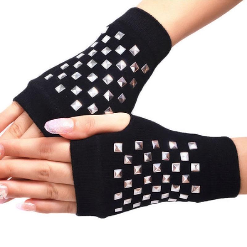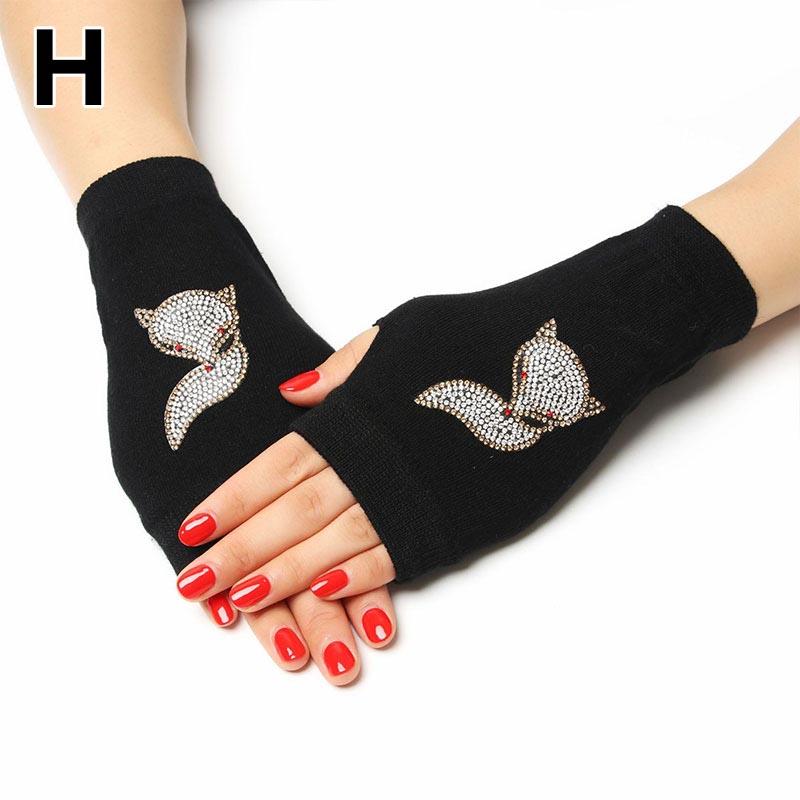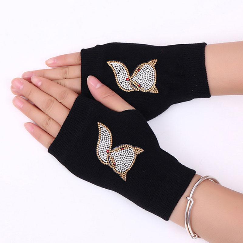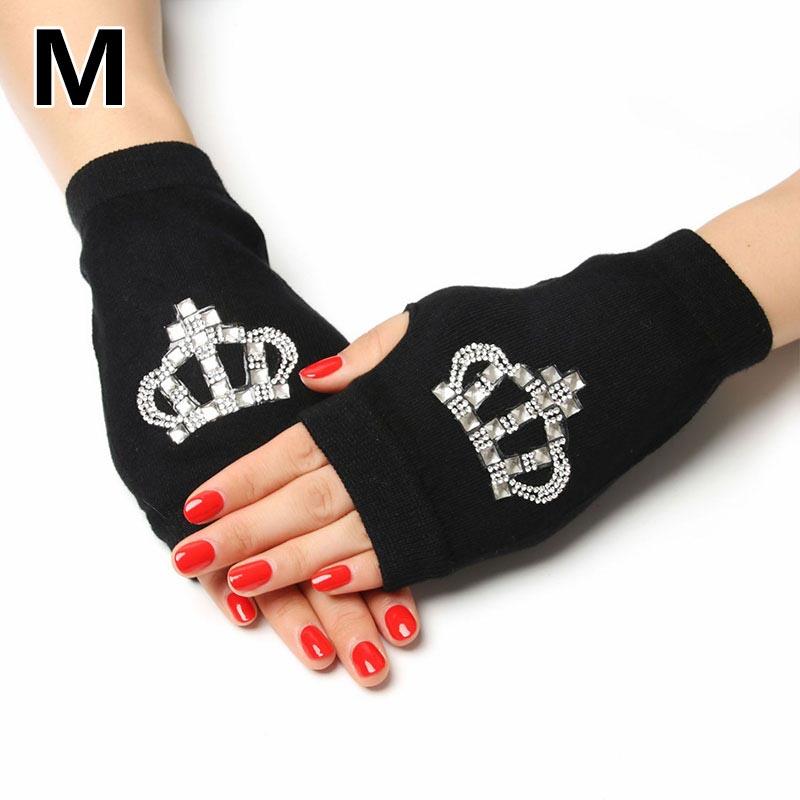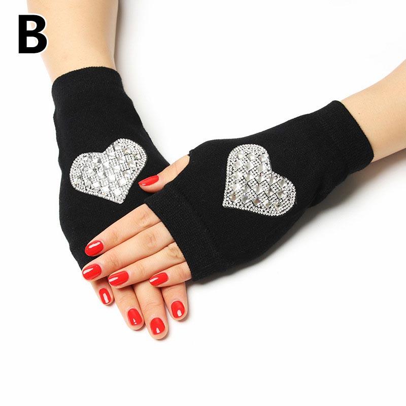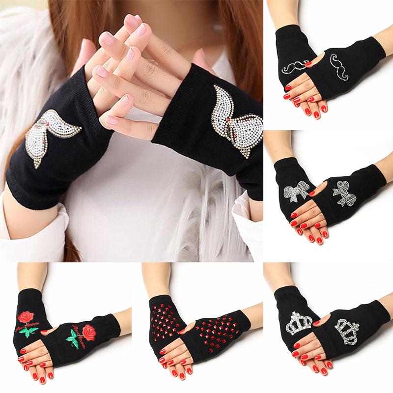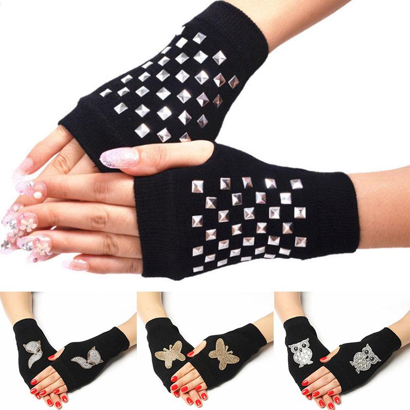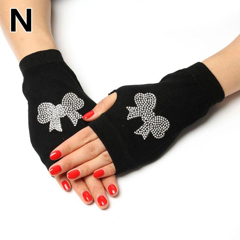 Женские вязаные перчатки без пальцев с сенсорным экраном, теплые зимние перчатки со сверкающими стразами