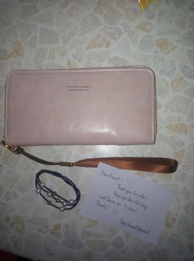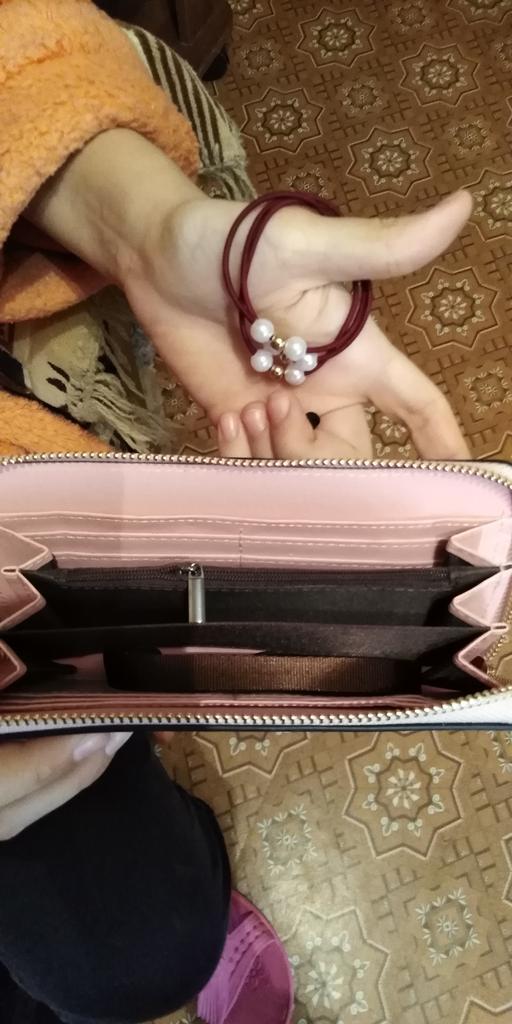 Кошелек который мне подходит ❤️ ❣️ Нежный цвет ❣️ Очень вместительный, помещаются разные мелочи и даже кошелек. ❣️ Продавец положил в подарок 🎁 резинку для волос под цвет кошелька ❣️ Доставка быстрая-2 недели ❣️ Сделано качественно ❣️У продавца на выбор много расцветок на любой вкус С удовольствием рекомендую 🎀