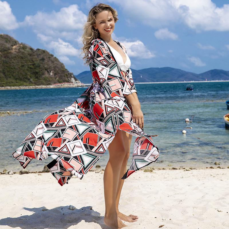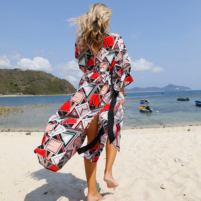 Длинное пляжное платье из полиэстера, женские платья, халат, бикини, парео, пляжная одежда Playa Mujer