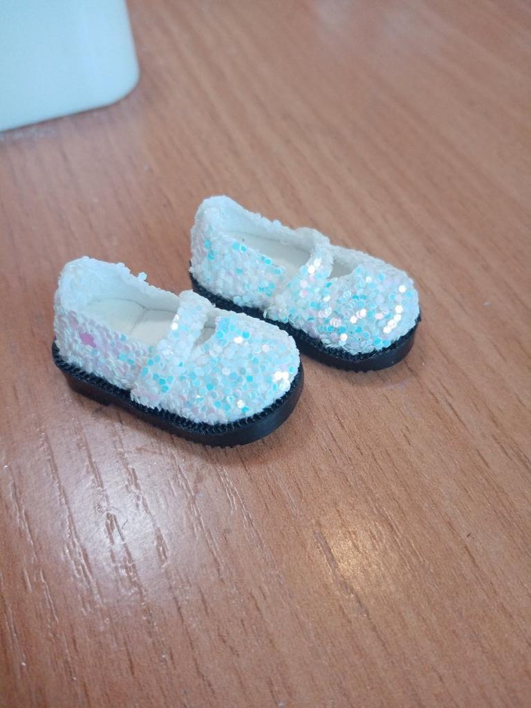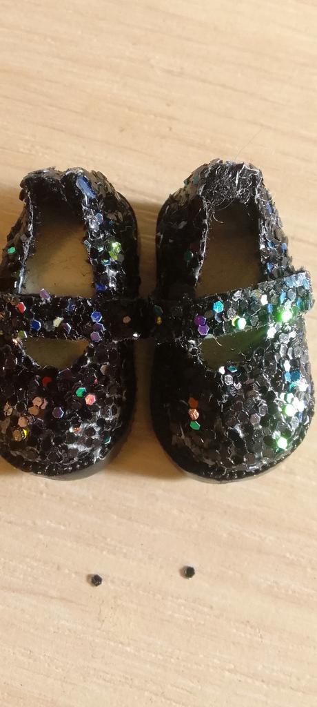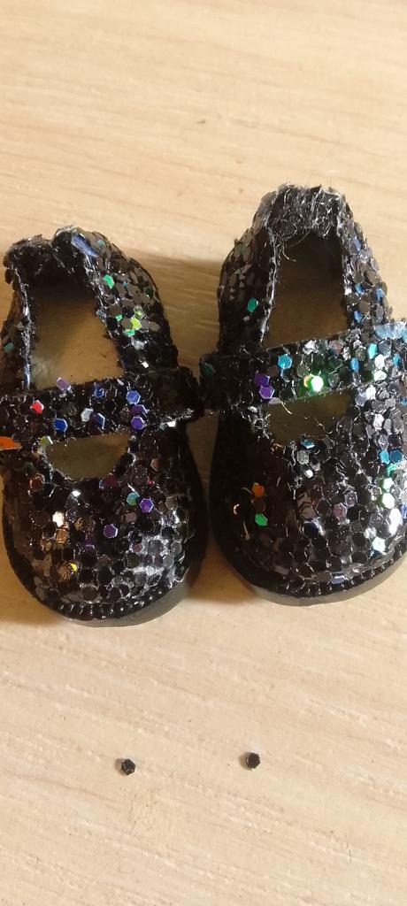Просто ужас! Зачем делать обувь для кукол с блёстками, если не знаете, как их закрепить???? Все носы у туфелек облезлые, блёстки остались в пакете, часть продолжает осыпаться😢 Добавила звёзды за то , что служба поддержки вернула полцены. Нужно закрасить туфельки черной краской и закрепить оставшиеся блёстки лаком. Размер туфель меня устроил- как раз кукле Макси с нестандартной стопой. Длина её ножки 3 см.