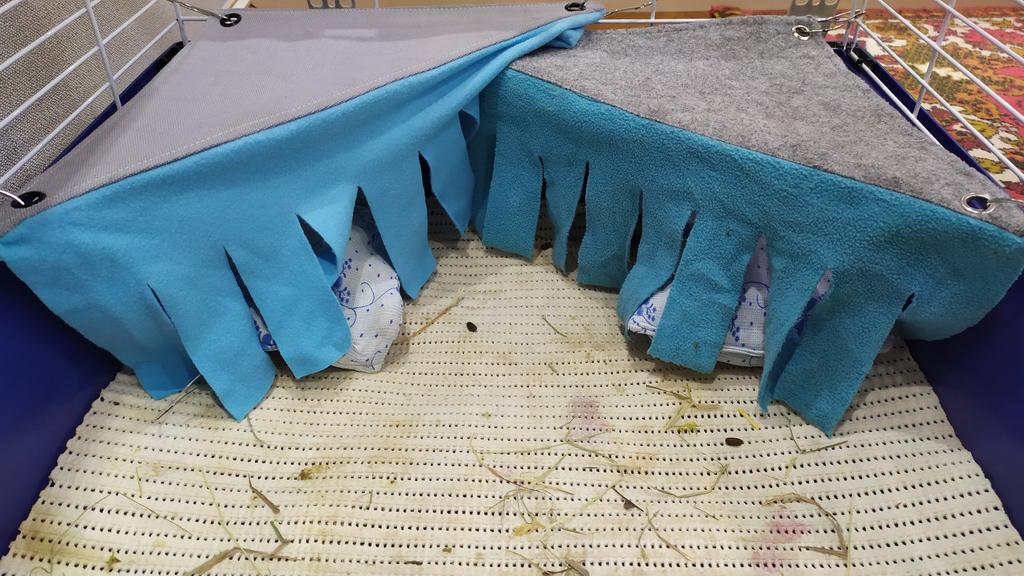 Очень хорошая задумка. Но это же грызуны! Моя крольчишка сгрызла домик за две недели. Сначала пряталось в него и обнюхивала, а потом сгрызла, остались обрывки ткани.