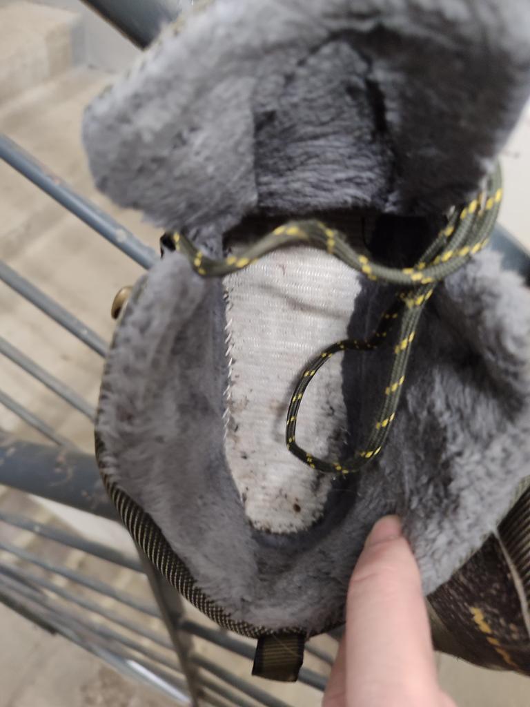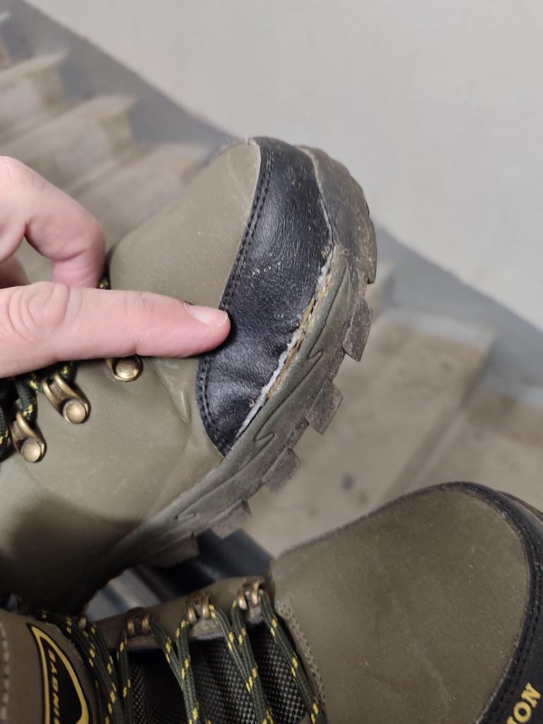 На мой 43й,этот 46й, как 44 или 44,5, оставлю себе, добавлю стельку теплую и махровые носки, в следующую зиму. Не думал, что будут такими большими... Дополняю...потекла подошва на пятке, продавил, пятками же, стельки, вылезли"ребра жёсткости", думал,заполнить клеем, или герметиком...Оторвалась полоса от подошвы,черная на носке левого ботинка,можно было указательный палец просунуть- выводы делайте сами - "Не всё то золото, что блестит..."