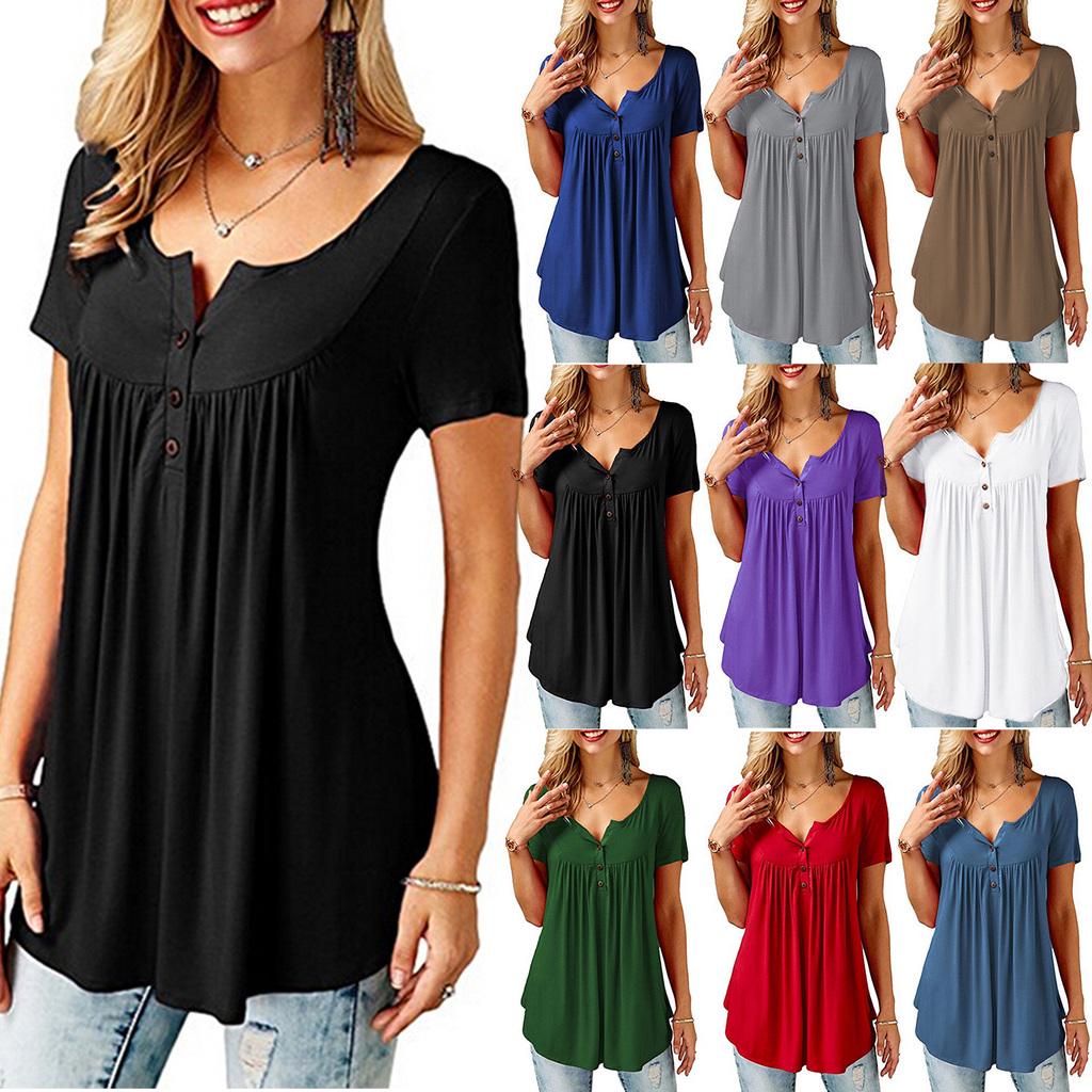 Женские пуговицы с круглым вырезом, свободные эластичные топы, женские рубашки-туники с коротким рукавом, женские повседневные блузки — купить товар онлайн с бесплатной доставкой по всему миру!