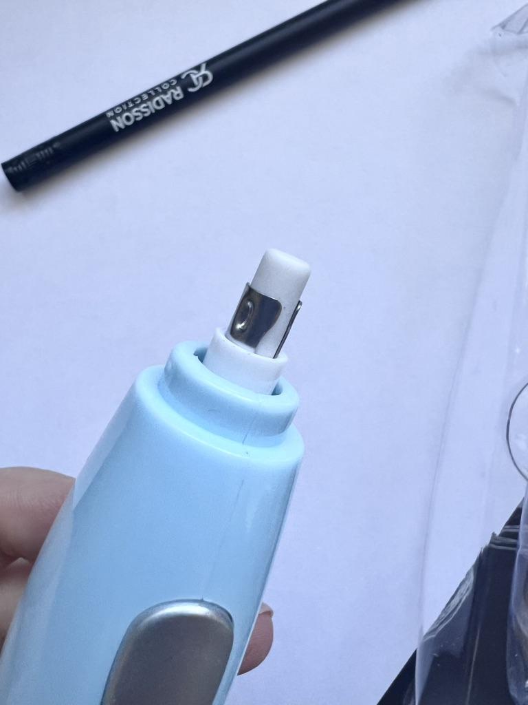 Электрический ластик🩵 Очень удобный гаджет, оправдал все ожидания). Приходит в коробочке. Внутри сам приборчик, кабель для зарядки и набор ластиков разной ширины-толщины. Рукоятка прибора комфортно лежит в руке. Гаджет начинает работать при нажатии на кнопку и прекращает если ее отпустить. Классная вещь, для тех кто предпочитает рисунки карандашом- можно высветлять определенные области, или просто для тех кто любит рисовать. На видео я показала, как замечательно электроластик стирает простой карандаш! По ссылке два цвета корпуса, на выбор. При доставке, коробочка немного помялась, но с ластиком ничего не случилось. Заряд держит хорошо. Советую. Огонь!🔥