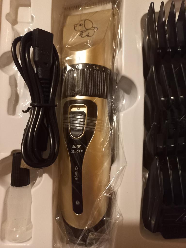 Машинка пришла целая, коробка немного помялась. Всё в наличии как заявлено. Когтерезка хорошая, острая. Машинка тоже неплохая, но очень длинную шерсть берет плохо поэтому сначала убирала длину, а потом уже ней ровняла. У меня шит цу, шерсть очень мягкая, может если бы жёсткая то брала бы и длинную хорошо. Насадка крепится очень плотно, после стрижки еле сняла. Машинка пришла заряженный, постигла собаке лапы по всей длине и она ещё была с зарядом. При постановке на зарядку горит лампочка, но цвет она при полной зарядке не меняет поэтому не совсем понятно на сколько зарядил аккумулятор. А так в целом машинкой довольна. Работает тихо без лишней вибрации. Ножницы не понравились, мне показалось что они тупые.