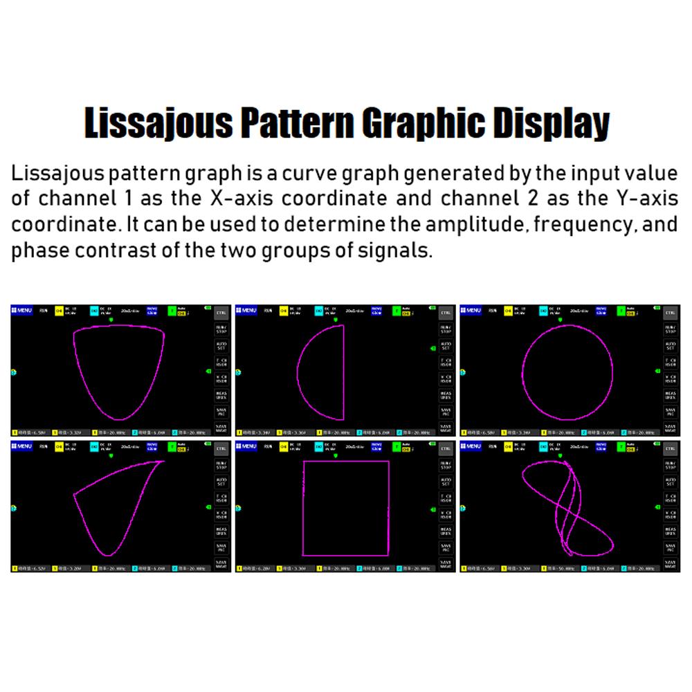 Функция графического отображения фигур Лиссажуса может быть использована для определения амплитуды, частоты и фазового контраста двух групп сигналов.