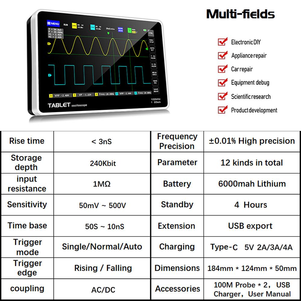 Встроенный 1GB хранения пространства, может хранить до 1000 скриншотов и 1000 наборов данных волновой формы.