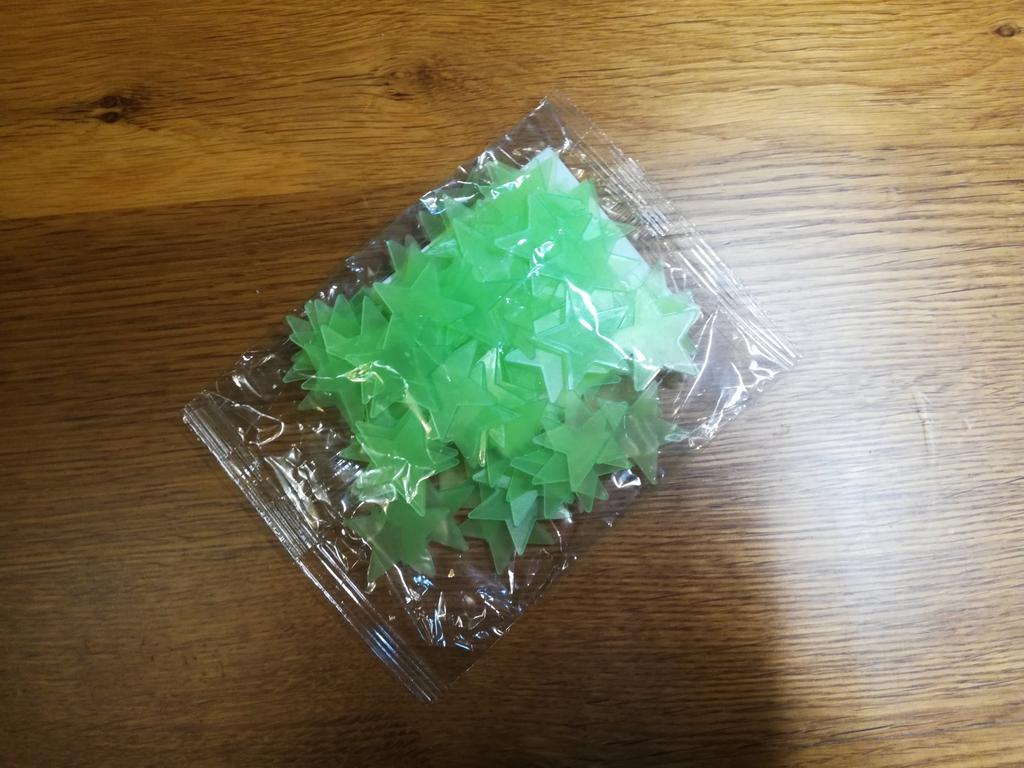 Отличные приколюхи! Разве что немного смутил двусторонний скотч почему-то белого цвета в комплекте для фиксации звёзд. Смотрится классно. Слегка отражаются в темноте.