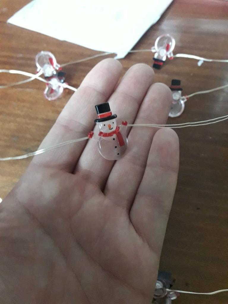 Посылка шла больше месяца ... гирлянда 👍 2режима мигающая и просто горит))) правда думала будут снеговички по больше...