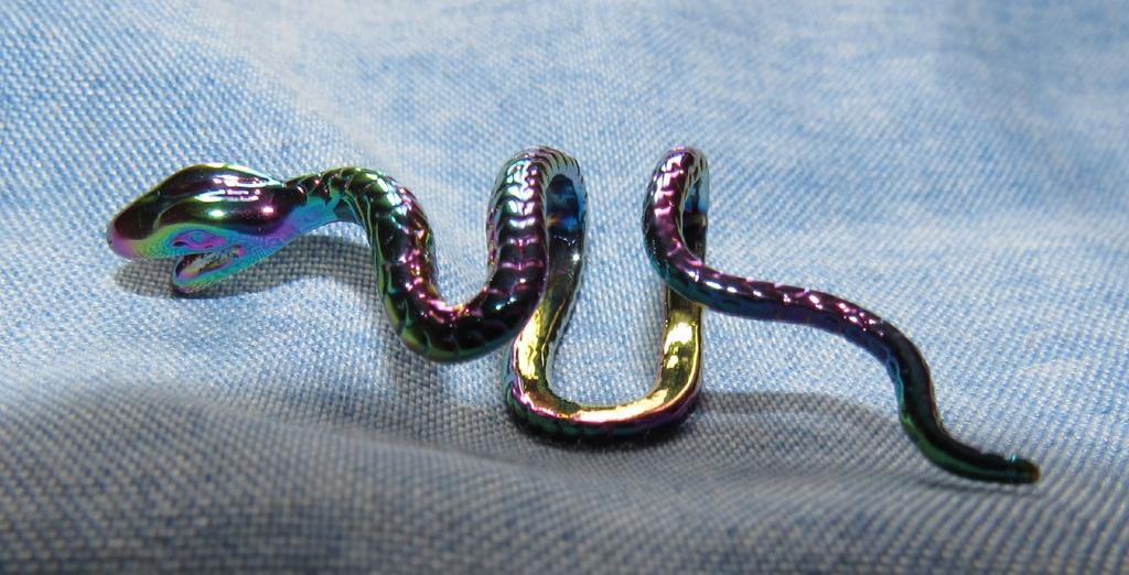 Прекрасное украшение! Пришло в Украину точно по заявленному времени (заказ сделала 9 мая, пришёл 21 июня). Выглядит красиво, переливается на свету. Лично мне не жмёт (как только одела в первый раз, то принёс дискомфорт, но через 1-2 минуты уже ничего не ощущалось). Сидит отлично. Чтобы погнуть надо приложить усилия. Сделан аккуратно и со вкусом. Есть текстуры в виде чешуи змеи и небольшие углубление для "глаз". У змейка открыт рот. Насчёт повседневного ношения сомневаюсь, но для фотографий или в виде выделяющегося украшения прекрасно подойдёт. Мой единственный совет: берите! Я не пожалела. Буду рада, если хоть кому-нибудь мой отзыв поможет сделать решение!