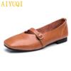 Женские туфли с пряжкой на плоской подошве