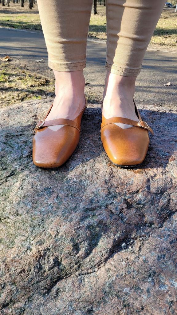 Лучше чем на фото. Мягкая кожа, очень эффектный цвет. Каблучок хотелось бы на полсантиметра-сантиметр повыше, было бы удобнее, но небольшой подаятник в помощь)) на ногу 26 по стельке, 25,5 в ширину чуть-чуть сжимает ступню, но пока примеряла - туфля "приспособилась" к ноге, т.к. подкладки нет и кожа очень мягкая, а ремешок можно чуть-чуть удлиннить за счет пряжки. На сырую погоду не подойдёт - подошва тонкая.