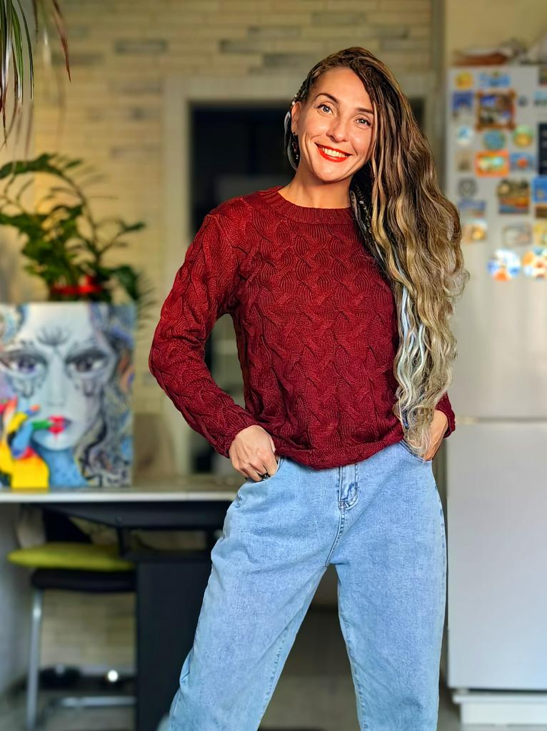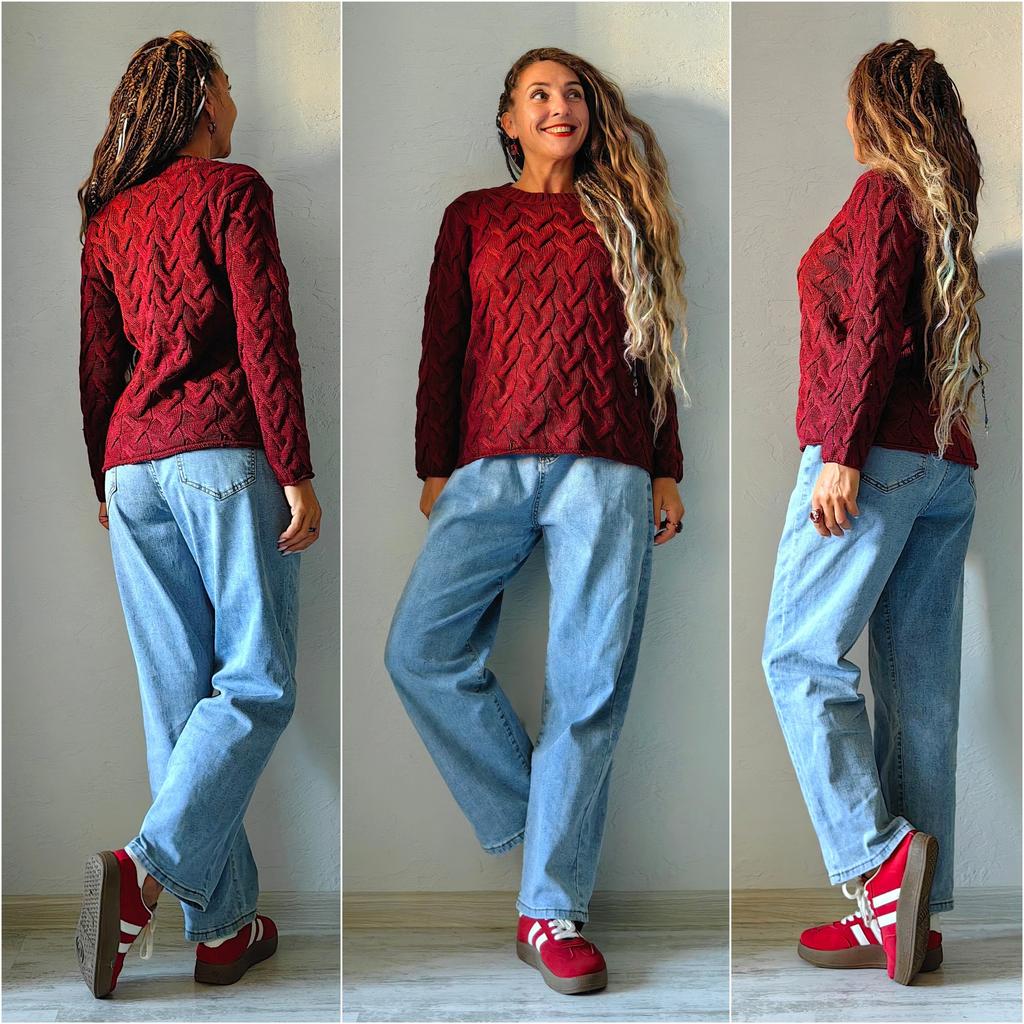 Свитер цвет марсала 🍷🍫 Всем солнечный приветик 👋😉 Впереди холодный сезон и такие свитерочки мы активно носим А самое главное, что они легко вписываются в разные образы У продавца есть выбор по цветам, мой цвет у него называется «винный красный» Свитер идёт в едином размере На мне сел свободно Думаю, что лучше подойдёт до 48, на бОльшие параметры сядет по фигуре Кто любит, когда так сидят свитера, то, конечно, можно присмотреться к такому варианту На высокий рост длина рукавов будет коротка Мои параметры: 🎗 рост 160см 🎗 вес 54кг 🎗 длина плеч 40см 🎗 объём груди 93см (75D) 🎗 объём талии 63см 🎗 объём бёдер 93см. Качество: 🍷 акрил, возможно, с небольшим добавлением хлопка 🍫 вязка крупная косичка 🍷 приятный к телу и не колется 🍫 швы ровные 🍷 качество отличное. Точные замеры свитера в размере XXXL: 📏 ОГ - 104 - 112см 📏 объём низа свитера - 100 - 120см 📏 плечи - 42см 📏 длина рукава от воротника - 63см 📏 длина свитера от плеча - 60см 📏 объём проймы - 40см 📏 объём манжеты - 18см. Я свитером довольна очень-очень и рекомендую его всеми ручками 🤗💞 Спасибо, продавцу и Джуму 😘 Чмок-чмок-чмок, всех кто со мной на Джуме 😘 Желаю удачных покупок 🛍😊 терпения 🤗 и весны в душе 🌈☀️🌱🦋🌼💕🐞🌳🕊 До скорого 🙌😊 Песня во втором видео: REYA & Red Square «Live Without You Love 2.0» 🎶💃🎶