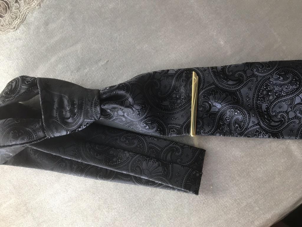 Очень хорошее качество ткани! Мне понравилось, что полосы разных цветов имеют разную на ощупь фактуру. Аккуратно выполнены все элементы набора, но зажим для галстука неаккуратно покрашен и это бросается в глаза. Мужчине всё понравилось, заказывала ему в качестве подарка!