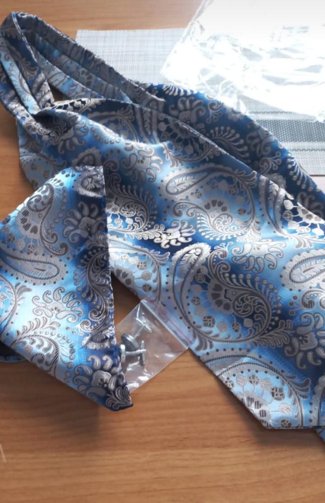 Шикарный набор! 🤩👍🔥В комплекте шейный платок, платок для нагрудного кармана, запонки. Ткань довольно приятная, завязывается и ложится хорошо. Покупала другу в подарок, и примерила на себя- вроде тоже неплохо (смотрите фото). Друг тоже доволен 👏🙂 Вот теперь думаю: не заказать ли себе такой 🤔🙂 Спасибо производителю, и Джум!⭐⭐⭐⭐⭐