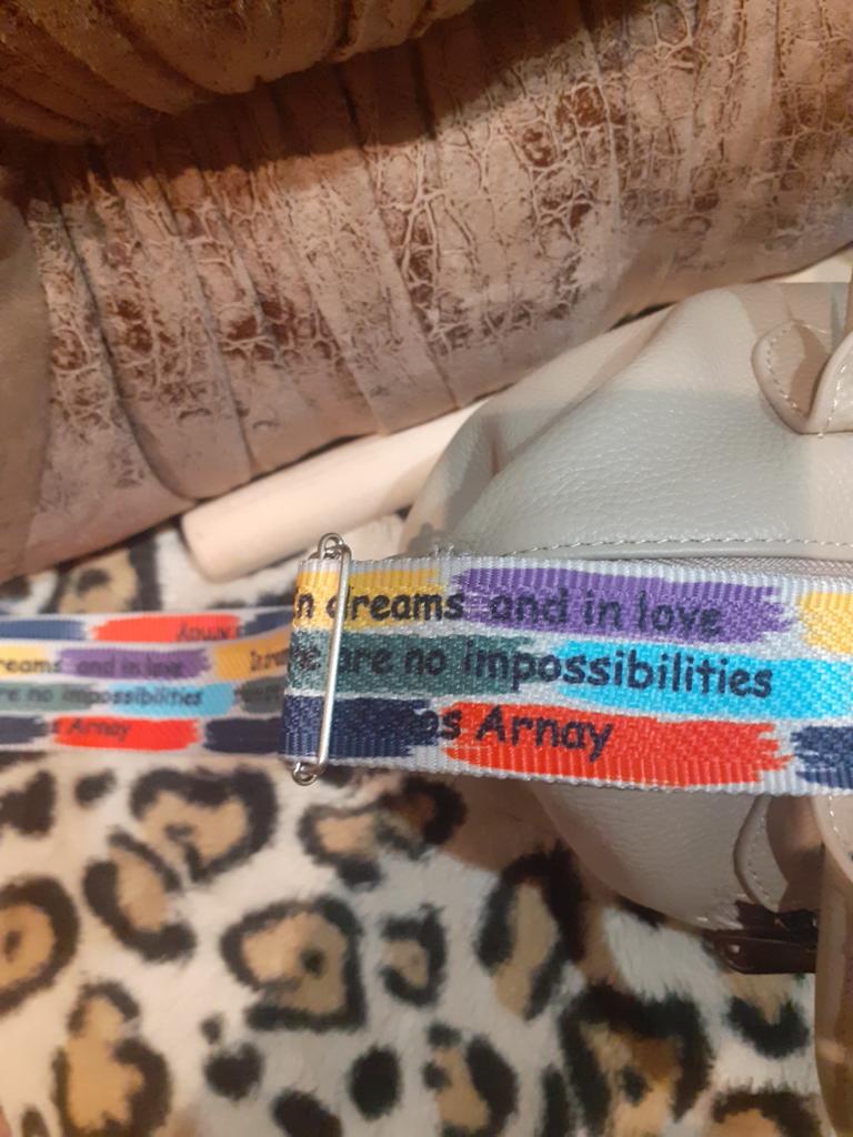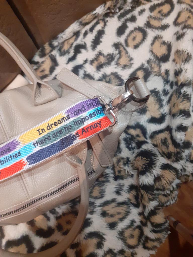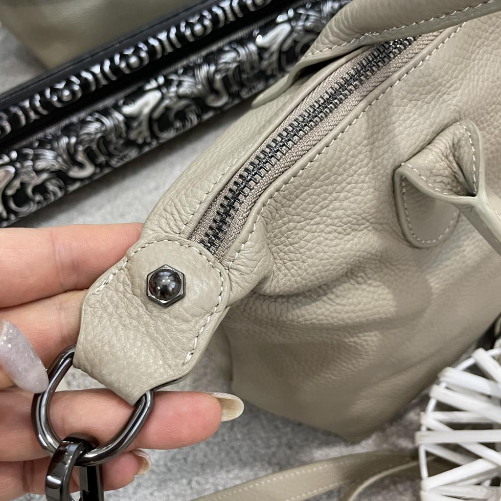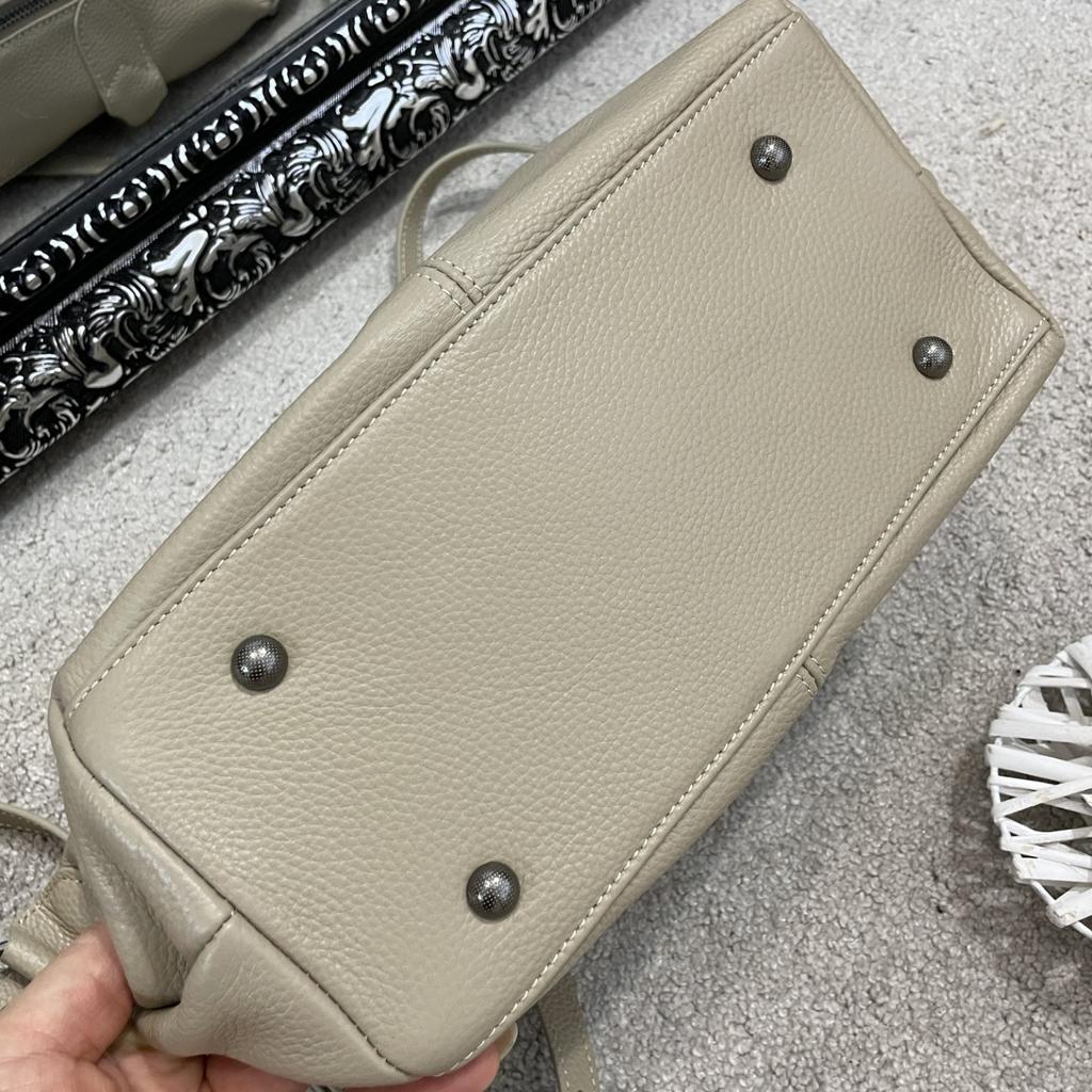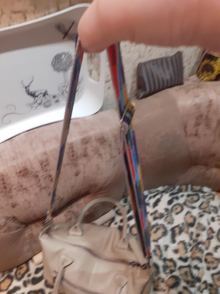 Наконец-то получил долгожданную сумочку. Ждала, когда она будет по адекватной цене. Сумочка очень понравилась и качество пошива, и цвет. Цвет бежево-серый. Пошив аккуратный. Что касается материала, думаю это прессованная "кожа". На сумке прицеплен кусочек натуральной кожи, но это не факт, что сумка из такова же материала. Мягкая, но форму держит. Спасибо Joom. Сумочка вместительная. Ручки и молнии надежные. Спасибо Joom!